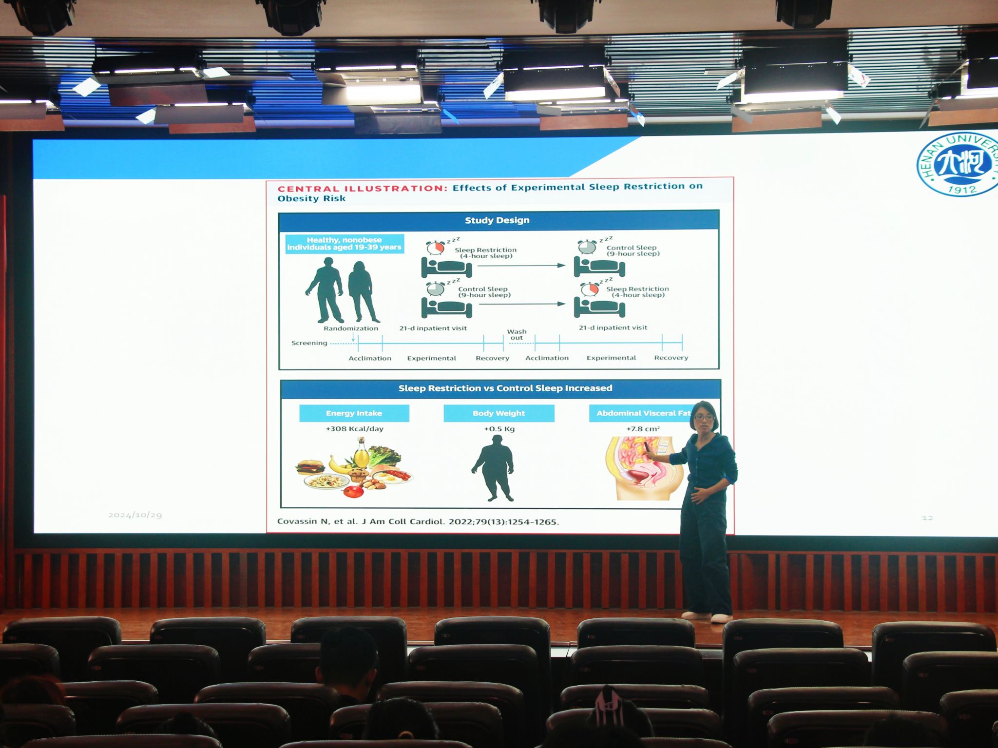 10月29日下午,学院研究生综合素质教育课程在圆形报告厅如期举行,本次课程以“健康生活从好好睡觉开始”为主题,特邀了教育学部心理学院王红波副教授主讲。她为2024级全体研究生带来了题为《好好睡觉很有必要》的专题讲座。课程负责人李志芳担任主持。