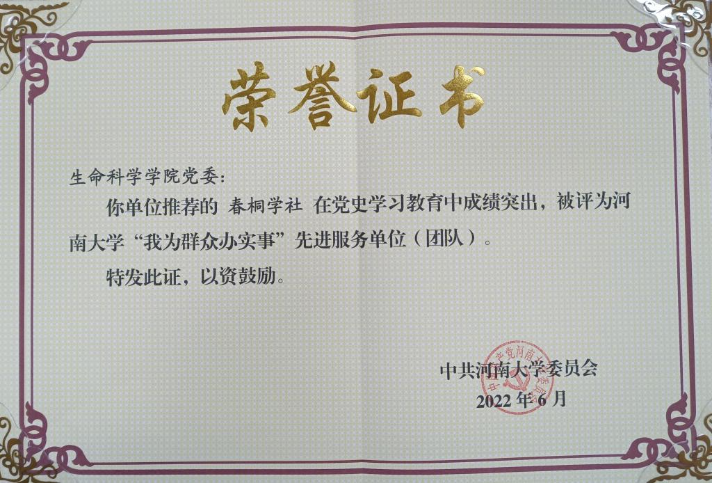 在“我为群众办实事”实践活动先进典型表彰中,我院党委荣获永利集团304am登录党史学习教育优秀组织奖,春桐学社荣获永利集团304am登录“我为群众办实事”先进服务团队,赵海鹏同志荣获永利集团304am登录“我为群众办实事”党员服务标兵。