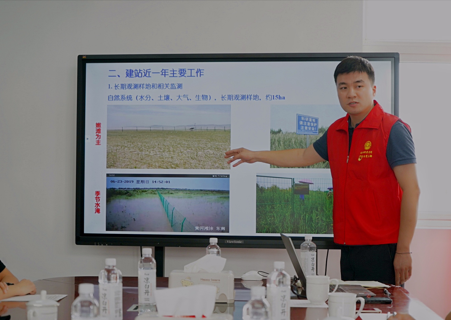 桃花峪滩涂系统研究站管理员苗原老师从研究站的建设情况、已取得成效以及存在问题等方面对研究站进行了讲解。大家真切感受到了研究站从无到有,一路走来的艰辛历程,也认识到了黄河生态环境亟待改善。我院18级博士余炎炎对自己平时在该研究站的学习工作经验进行了介绍,让大家深切感受到黄河环境的恶劣,也被她认真刻苦努力的工作学习精神所感染。张亚歌对研究站的各位老师同学表示感谢,并倡导在座的党员和入党积极分子们积极为保护黄河的生态环境贡献出自己的一份力量。