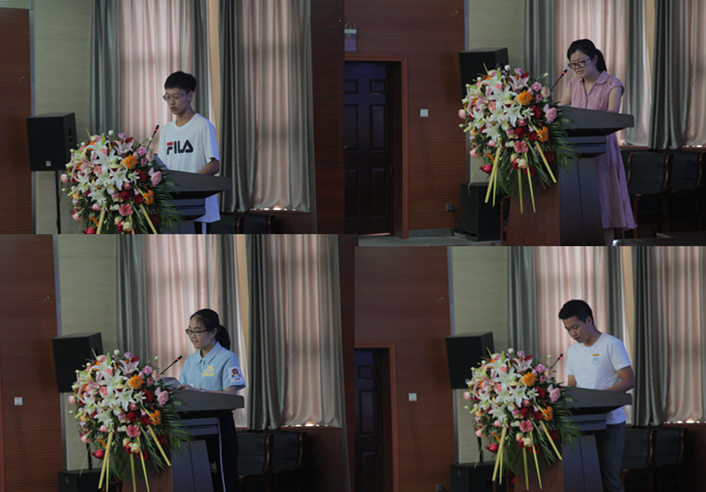学院2017级本科生王昊宇、2018级博士生刘艳杰作为在校生代表,2019级本科生刘紫薇、硕士生张思远作为新生代表先后发言,共同向师长和父母们表示衷心感谢,并结合自己对大学生活的认识与感悟、对美好未来的规划和期许,祝愿全体2019级新同学永葆热忱和梦想,不畏挑战、大胆前行,在大学绽放青春的耀眼光芒。