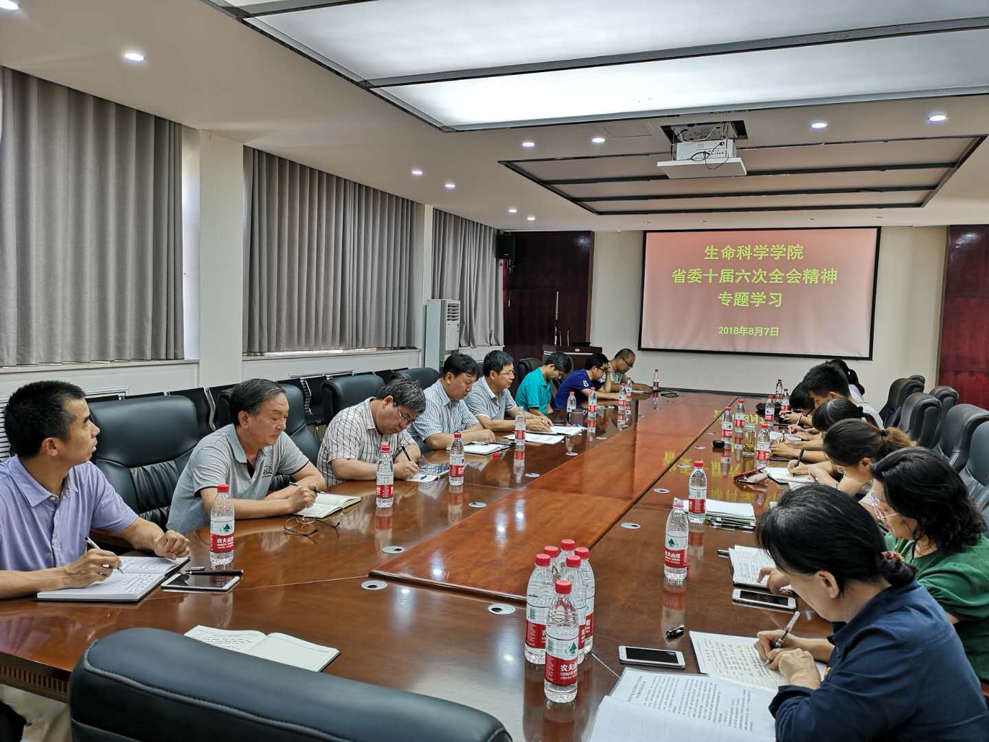 8月7日下午,依照学校党委统一部署,永利集团304am登录在学院B201会议室召开专题会议,组织学习省委十届六次全会精神。永利集团304am登录、植物逆境生物学重点实验室党政班子成员、各党支部书记、部分高层次教师代表参加了学习。会议由学院党委书记赵东保主持。