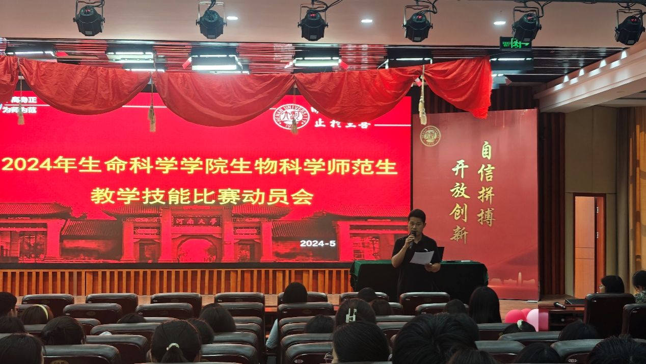 5月16日下午,永利集团304am登录2024年度本科师范生教学技能比赛动员会在学院圆形报告厅举行,学院党委副书记宋永鹏、副院长赵海鹏及竞赛指导老师、2022、2021级生物科学(师范)本科生共200余人参加会议。会议由生物科学系主任刘凌云主持。