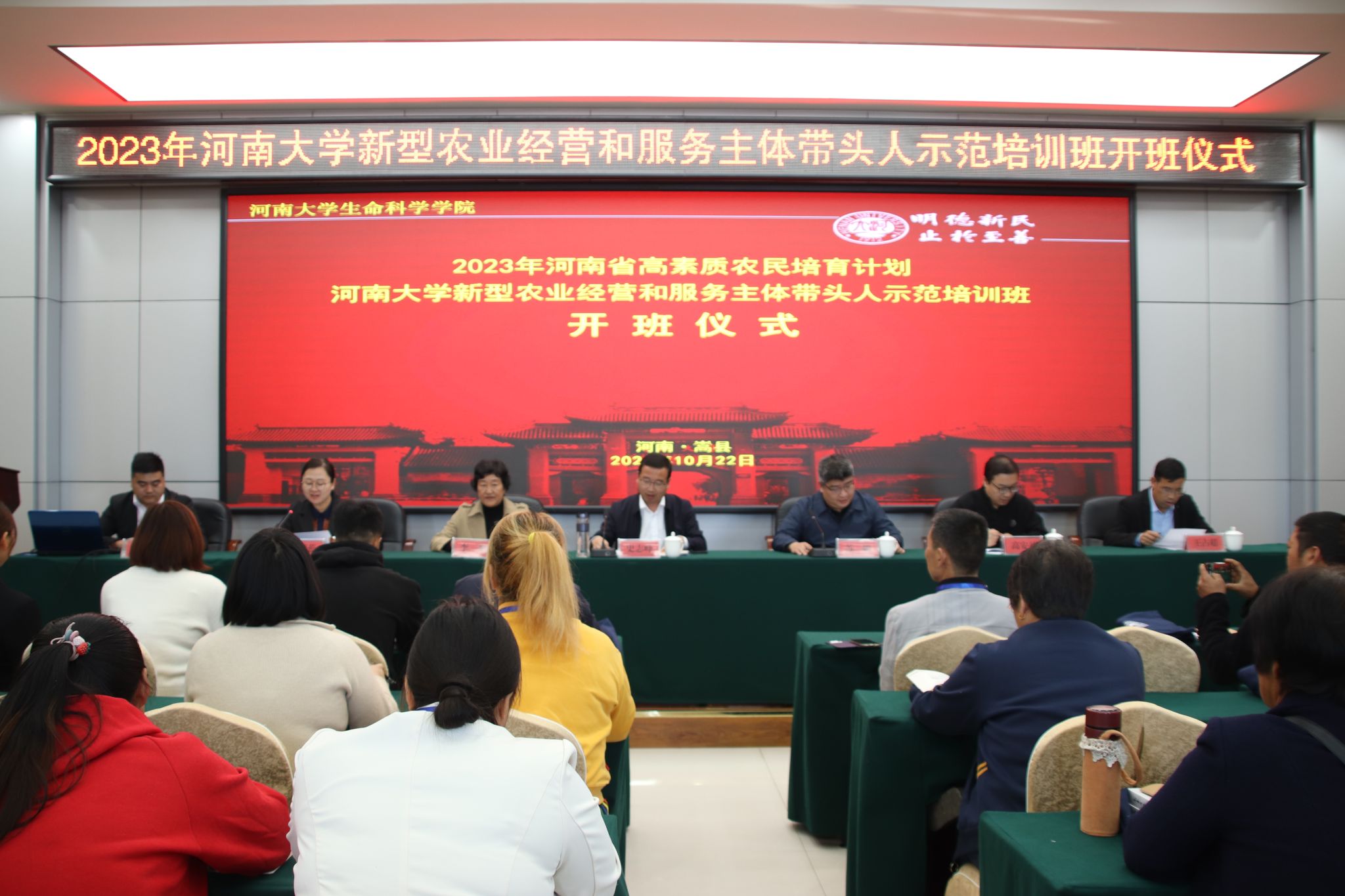 10月22日上午,由永利集团304am登录承办的河南省新型农业经营与服务主体带头人示范培训班在永利集团304am登录干部培训中心嵩县基地开班。嵩县人民政府副县长史志锋,学校嵩县校地结对帮扶工作队队员、永利集团304am登录副院长苏鹏,嵩县农业农村局副局长王占超,永利集团304am登录专家代表李黎、高安礼以及来自嵩县的100名从事食用菌种植与水产生态养殖的新型农业经营和服务主体带头人、农业产业领军人才、创新创业带头人参加了开班仪式。仪式由永利集团304am登录植物科学与技术系副主任苏亚蕊主持。