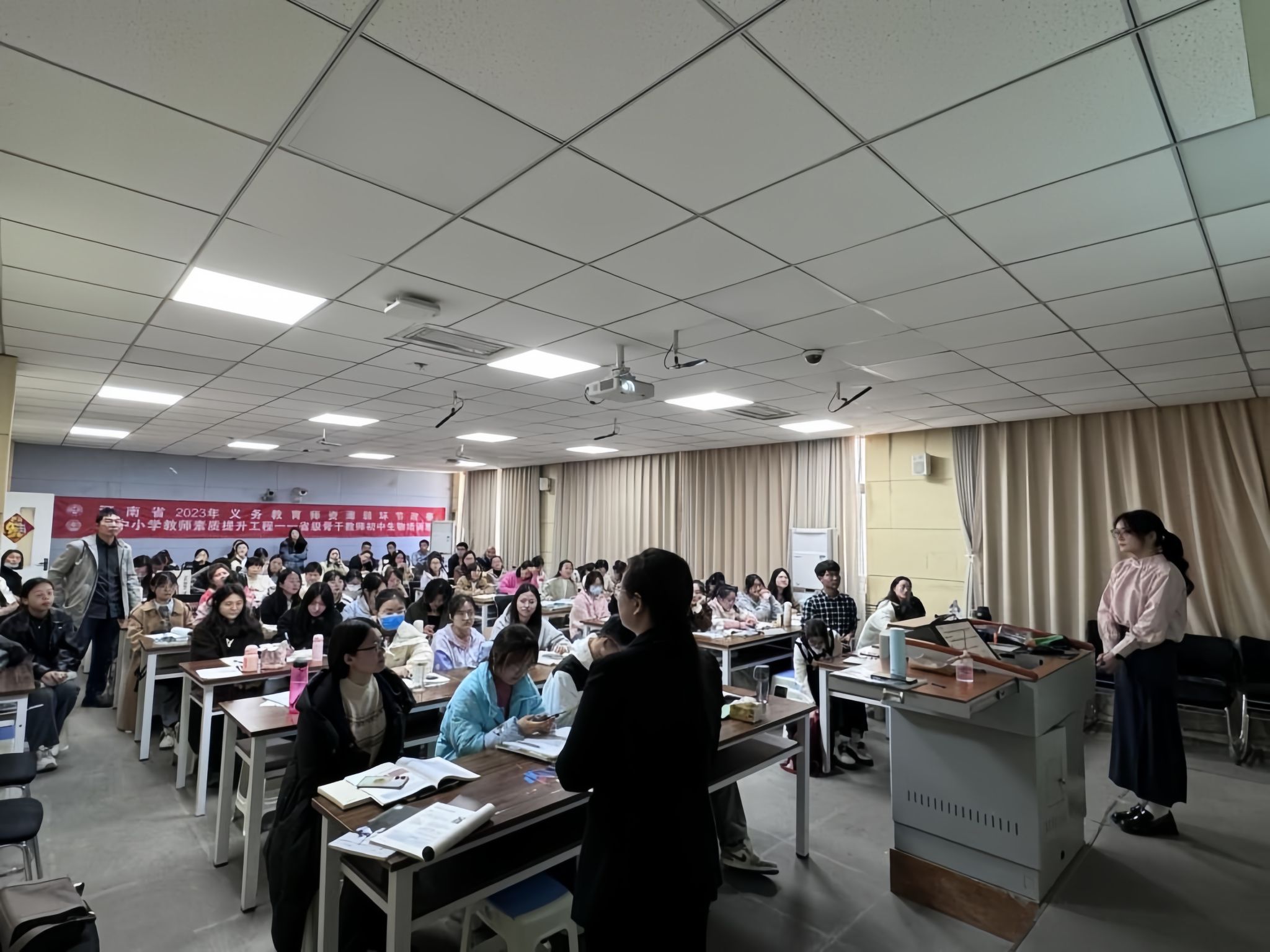 在研讨会前期准备阶段,学院导师代表张彤、苏亚蕊、贺洁带领2023级学科教学(生物)教育硕士生赴开封市第十四中学参加“河南省2023年省级骨干教师生物学培训‘同课异构’教学研讨交流活动”。开封市第十四中学教师吕雪童、三门峡育才中学教师王金蕊以《人类的起源与进化》示例课程,通过不同的教学方法和策略分别进行课堂教学展示,分享各自的教学心得体会。