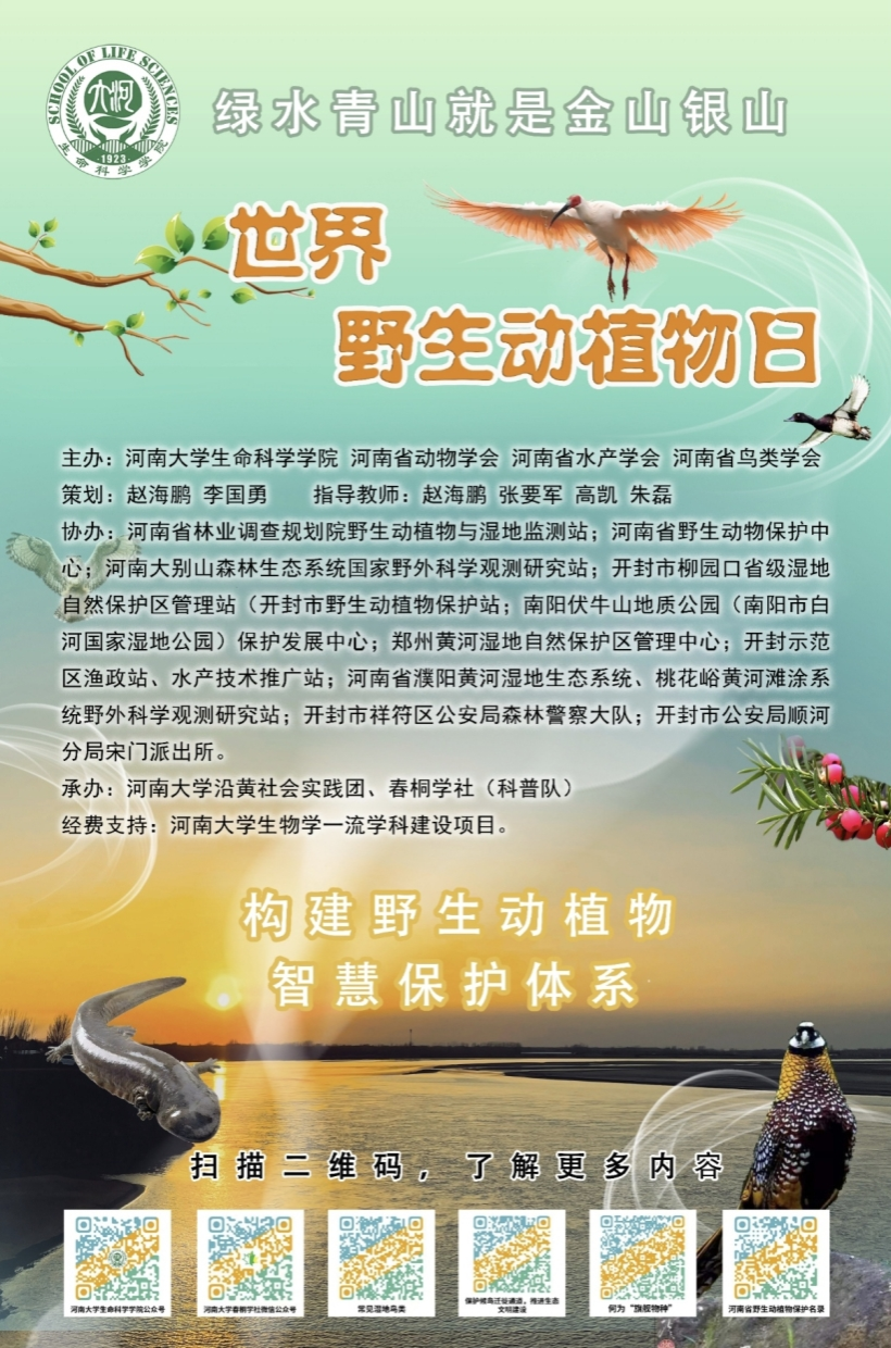 3月3日,第十一个“世界野生动植物日”之际,为进一步提高广大群众野生动植物保护意识,激发人们热爱大自然和保护野生动植物资源的热情。永利集团304am登录联合河南省动物学会、河南省水产学会、河南省鸟类学会等多部门,在开封市晋安广场、校园内外等多个地方开展以“构建野生动植物智慧保护体系”为主题的世界野生动植物日科普活动。