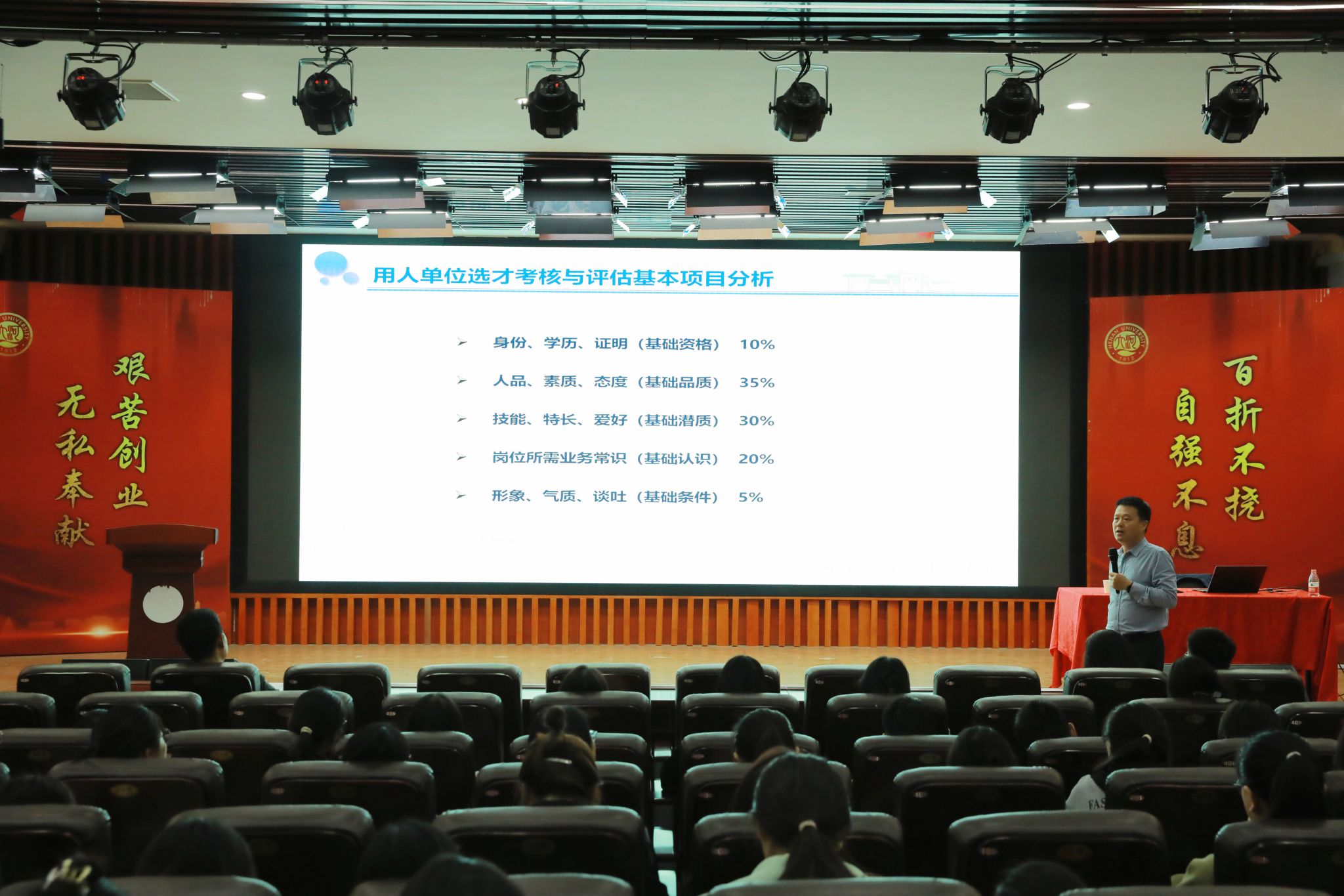 李从国分享了对高校开展就业工作的思考与实践,围绕经济新常态下“就业形势基本研判”、“就业现实问题”和“理性就业的路径及方法”三个方面进行阐述,分析了影响毕业生就业的影响因素和开展就业工作的方式方法。李从国对当前就业形势进行细致入微的剖析,由点到面,由浅到深,从个人的职业规划到国家的整体布局,使同学们对理性就业的认知愈发清晰,对当前就业的形势也有了深刻的认知。讲座内容紧扣当下就业工作实际,既有对就业影响因素的宏观把握,又有对就业趋势的精准分析,使同学们在面对巨大的就业形势下得以树立正确的择业观、就业观,明确自身就业方向、探索适合自己的应对方法。
