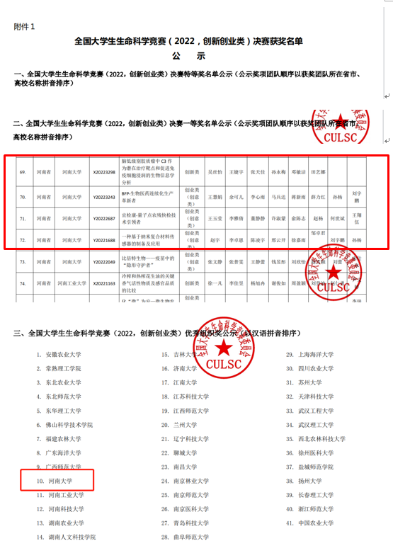 据悉,全国大学生生命科学竞赛(2022,创新创业类)是由全国大学生生命科学竞赛委员会、高等学校国家级实验教学示范中心联席会及《高校生物学教学研究(电子版)》主办,河南师范大学承办,全国大学生生命科学竞赛(2022,创新创业类)组织委员会组织实施,是中国高等教育学会竞赛排行榜赛事,覆盖面极广、参与人数多、对参赛项目要求高,是生命科学领域最具影响力的国家级大学生学科竞赛之一。