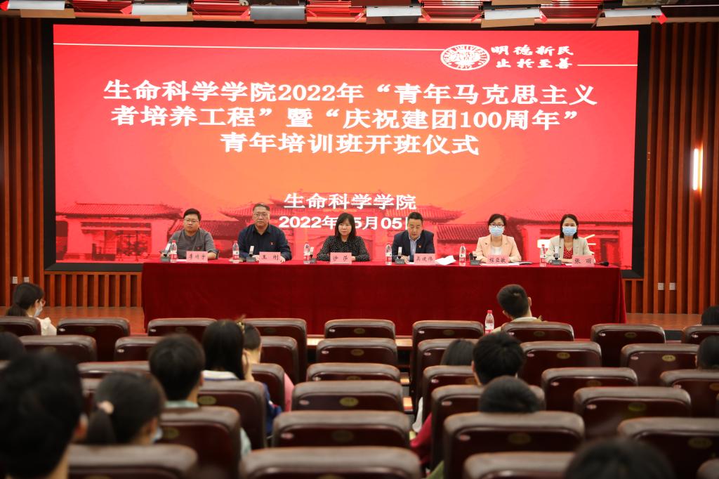 为庆祝中国共产主义青年团成立100周年,5月5日下午,永利集团304am登录2022年“青年马克思主义者培养工程”暨“庆祝建团100周年”青年培训班开班。校团委书记沙莎,永利集团304am登录党委书记吴建伟,学院执行院长、党委副书记王刚,学院党委副书记程亚敏等出席开班仪式,学院全体辅导员以及188名学员参加了此次活动。开班仪式采用线上线下相结合的形式进行。永利集团304am登录团委负责人张丽主持开班仪式。
