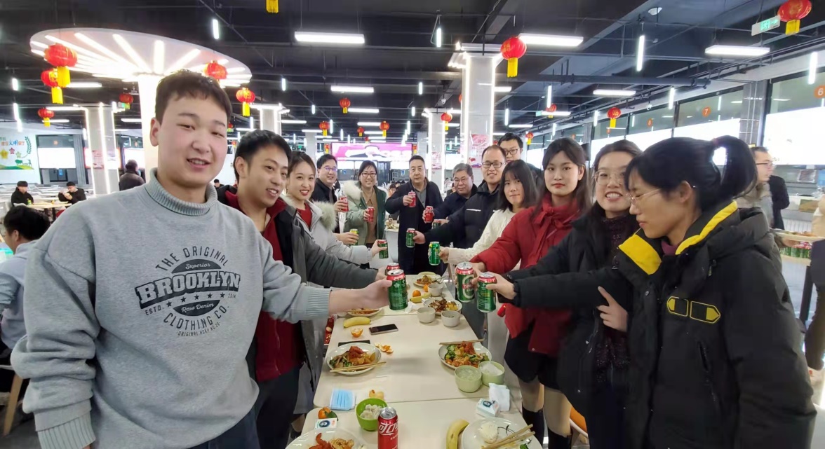 座谈会后学院领导和老师们为学生们送上牛奶、水果等新年大礼包,祝愿大家“新年快乐”、“学有所成”!晚上六点,学院和实验室的领导又来到学校餐厅,和同学们一起吃年夜饭,共同欢度春节!