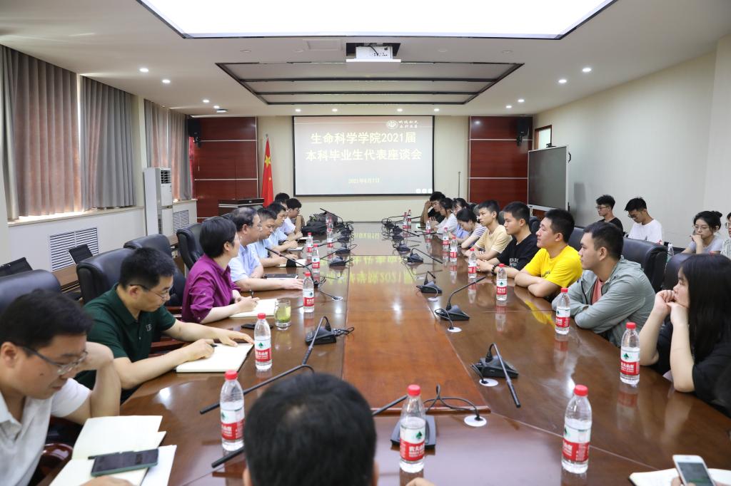 生物科学专业毕业生魏雨讲述了自己参加暑期夏令营的经历和体会,希望老师鼓励、引导学生多出去交流学习,为学生提供更多出去交流的信息和机会;生物工程专业毕业生井本甜谈了课堂学习的体会和感受,希望任课老师能活跃课堂氛围,多组织分组讨论、自由讨论等形式的交流环节;生物科学专业毕业生李英针对师范生教育提出了自己的建议,希望在课程设置、教育实习、本科生导师制、日常管理等多方面加强生物科学专业学生的师范教育。