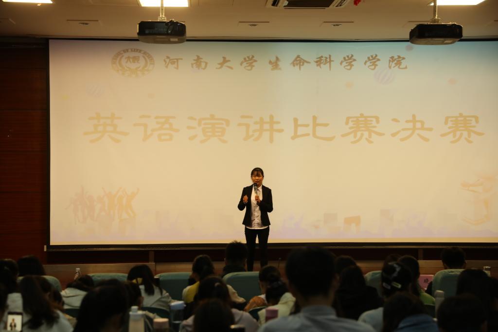 经过初赛的层层选拔,12位选手脱颖而出晋级本次决赛。在主持人介绍了比赛规则之后,参赛选手依次登台,围绕“Challenge to All”这一主题展开演讲,选手们精神饱满、准备充分、自信昂扬,或放眼全球,或贴近生活,用流利的口语声情并茂的表达了自己在后疫情时代对“Challenge”的思考,出色的表现赢得了全场观众的掌声与喝彩。在其后的评委提问环节中,参赛选手畅所欲言,才思敏捷,机智巧妙地回答了评委的问题,展现了生科学子良好的精神风貌。经过激烈角逐,最终有五位同学晋级校赛。其中,2号选手张怡童的演讲围绕全球性的环境问题,以标准的发音、顿挫的语调和流利的表达脱颖而出,摘得桂冠。