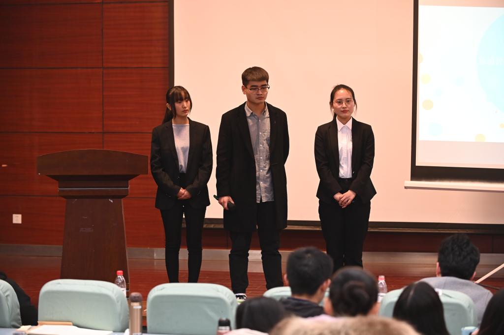 比赛现场紧张激烈,别开生面。各团队依次上场路演,通过精心准备的PPT和流畅的讲解,向评委和观众阐述了各自的项目背景、技术和研发优势、商业模式、市场定位、营销策略、财务分析、风险控制及所在团队的结构。选手们精彩的表现得到现场观众的阵阵掌声,评委老师现场进行提问,并给出指导建议,根据选手阐述和综合表现进行评分。