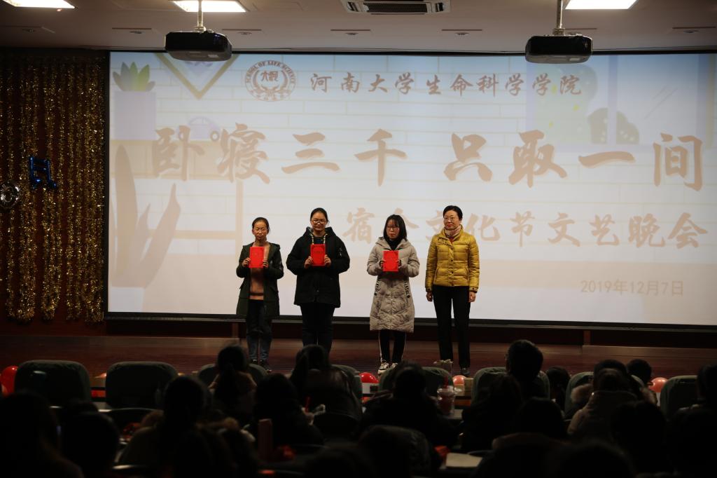 晚会在温馨的暖场视频中拉开了序幕。随后,优秀寝室代表开始了他们的“宿”说,活泼幽默的视频、富有个性的宣传语、创新别致的设计理念引得阵阵喝彩;宿舍安全教育宣传是本届宿舍文化节的重要内容,晚会通过视频播放和现场问答的形式普及了宿舍安全的相关知识;有奖问答、激情的舞蹈和动听的歌曲将晚会不断推向高潮;在优秀宿舍展示环节,有温暖感人的寝室照片展览,有绿色环保的“变废为宝”展示,充分展现了生科学子积极的生活态度和蓬勃的创新活力。