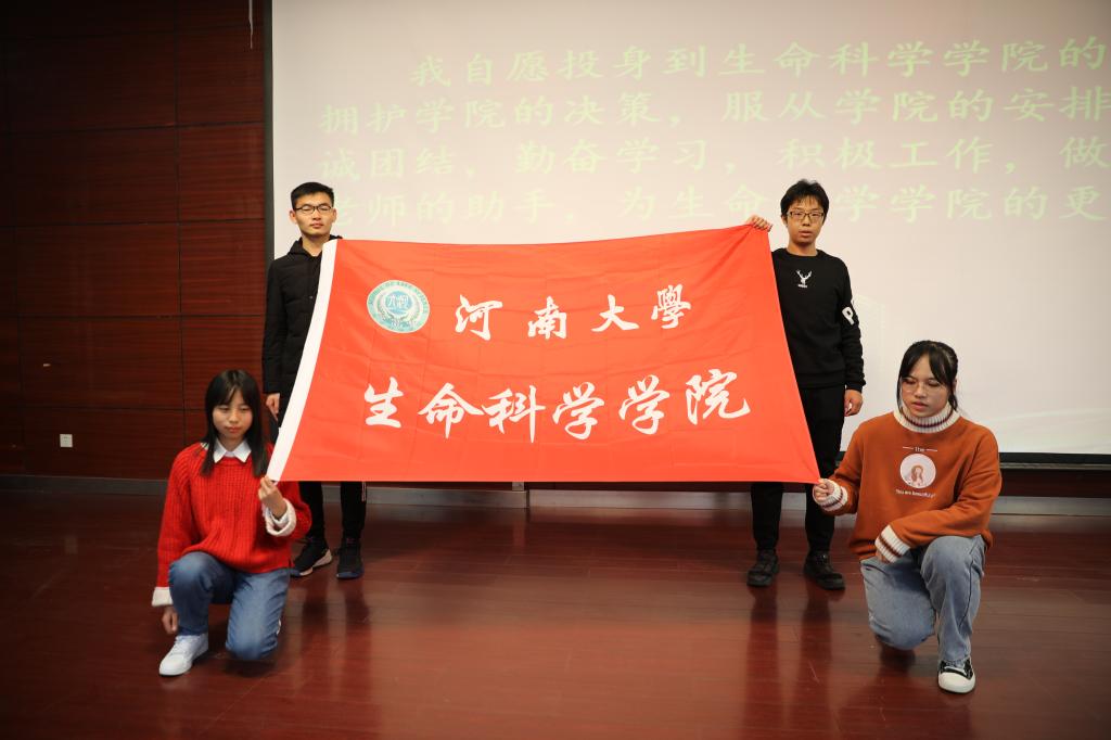 大会在雄壮激昂的国歌声中拉开帷幕。全体学生干部右拳紧握,眼神坚定,声音洪亮,面向院旗庄严宣誓:“努力学习,积极工作,做好老师的助手,同学的表率,为永利集团304am登录的更加辉煌而努力奋斗”。