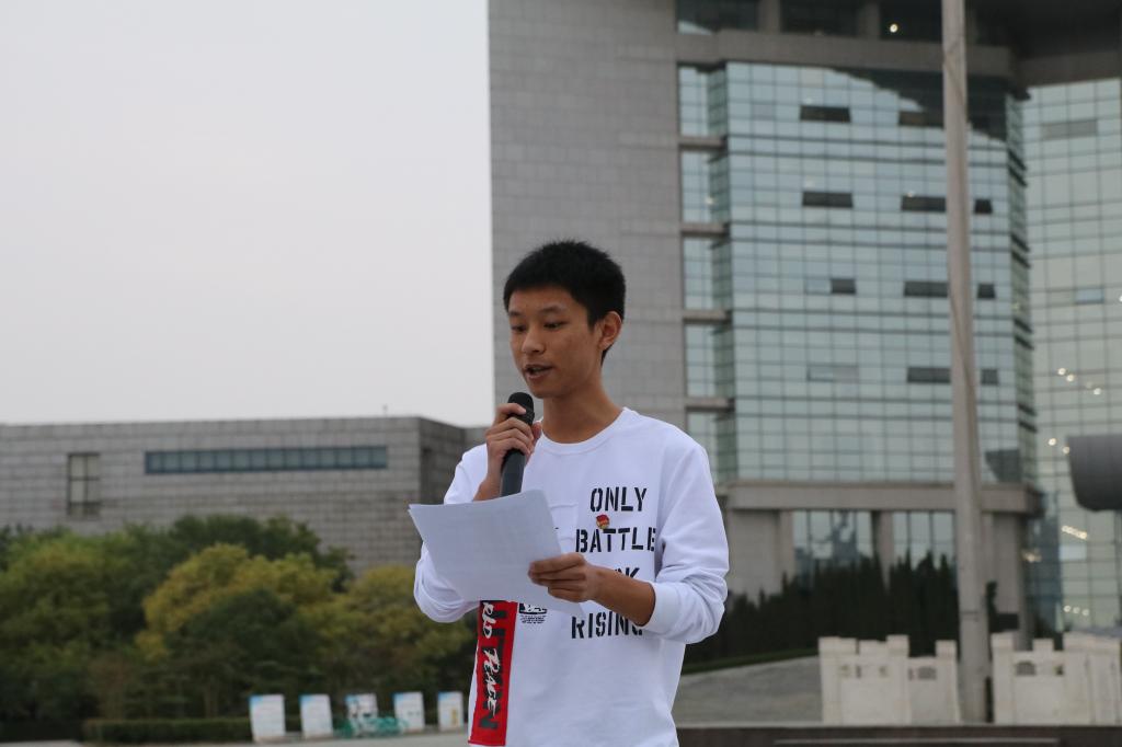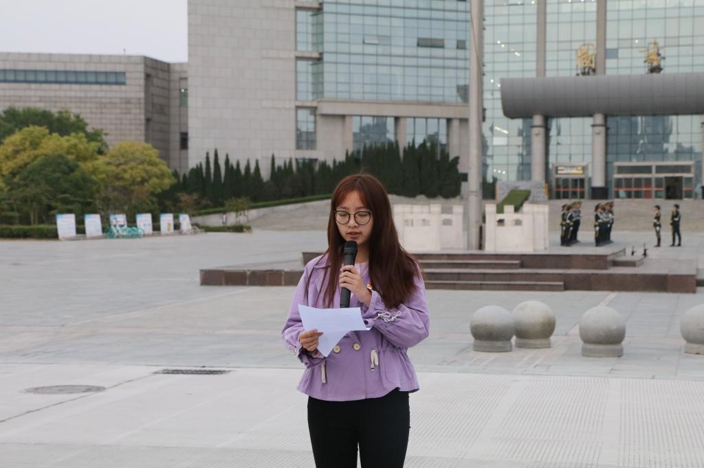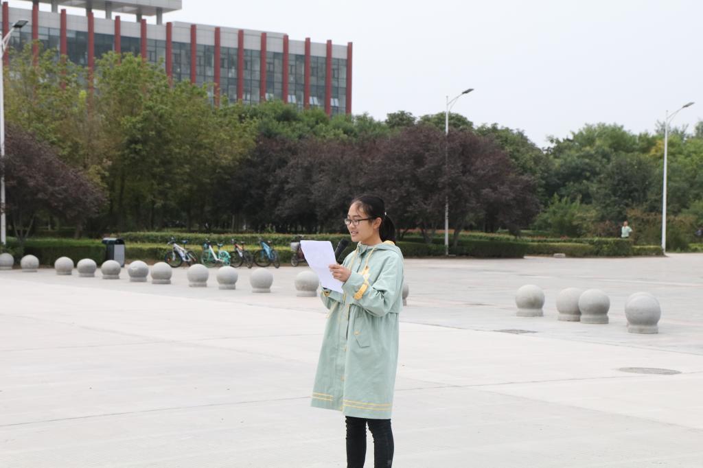 清晨六点整,全体学生集合完毕。首先,活动进行第一项——升国旗、奏国歌。在全体学生的注目礼下,英姿飒爽的国旗护卫队队员们护送着鲜艳的五星红旗进场。行礼完毕,伴随着雄壮激昂的国歌声,五星红旗冉冉升起,迎风飘扬,全体学生肃立注目,现场气氛庄严肃穆。升旗仪式结束后,活动进入第二项,各年级代表进行国旗下的讲话。首先,2017级生物科学明德班赵科举同学发表《我与祖国共奋进》的演讲。他提出,在中华人民共和国成立70周年之际,作为青年一代的我们要奋勇向前,时刻牢记实现中华人民共和国伟大复兴的责任与使命,与祖国共呼吸,与中原共出彩;紧接着,2018级生物工程专业赵霜竞同学在她的《礼赞新中国,奋进新时代》中表示,新时代属于每一个人,作为“双一流”建设的生科学子,我们应勇于创新,敢于质疑,团结一致,在追梦路上高扬奋斗之帆,共创美好未来;2019级新生代表生物科学专业的刘紫薇赞颂中华人民共和国70年以来取得的辉煌成就,并认为时代选择了我们,我们就要勇做时代的开路先锋,做时代责任的担当者。三位同学的讲话极具时代意义,为场下学生起到了很好的激励作用。