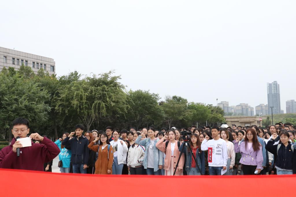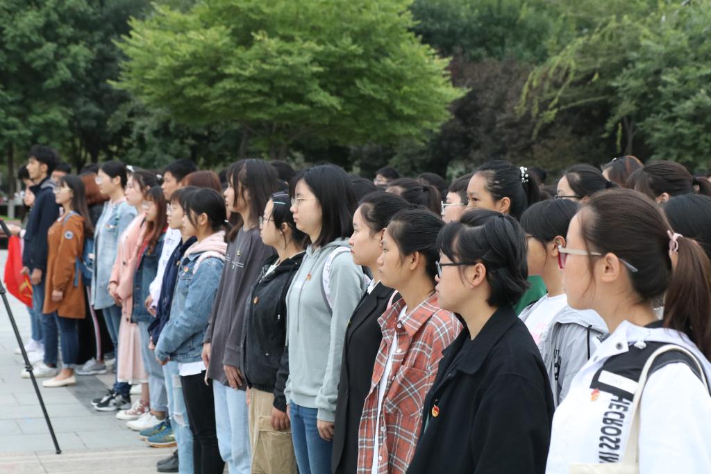 9月19日清晨,永利集团304am登录于学校图书馆前明德广场举办庆祝新中国成立70周年团日活动。2017级辅导员王松廷老师莅临现场,2017级、2018级、2019级所有共青团员参加了本次活动。活动由院团委副书记李婉君主持。