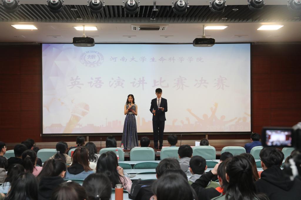 3月30日下午,永利集团304am登录在圆形报告厅三楼举办英语文化节系列活动之英语演讲比赛决赛。永利集团304am登录外语教研部李冬青老师、谢瑾老师,永利集团304am登录杰出人才特区支持计划特聘教授祝英方老师、生物工程系李志芳老师、生物科学系孙晓老师担任评委,院党办负责人、2018级辅导员李靖宇老师,院团委负责人、2017级辅导员王松廷老师莅临比赛现场,学院三百余名本科生观看本次决赛。