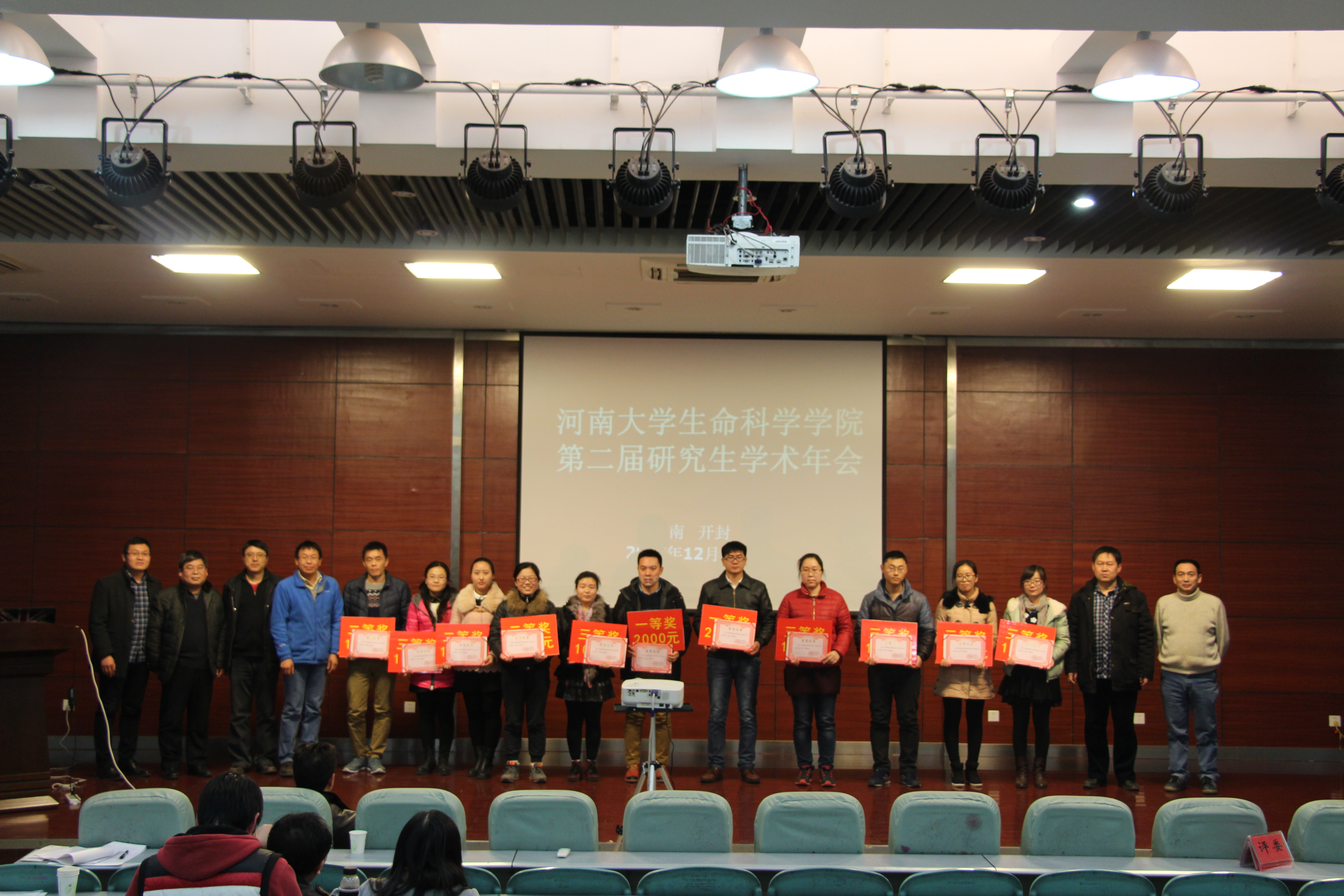 本次年会通过全体与会人员投票评选方式,评选出2015年博士优秀科研成果奖4名、硕士优秀科研成果奖6名;评选出博士优秀墙报奖3名、硕士优秀墙报奖11名;评选出博士优秀学术报告奖3名、硕士优秀学术报告奖8名。我院的黄河学者和特聘教授等高层次专家参会指导本次学术报告交流活动,并为获奖研究生颁发奖励证书和奖金。