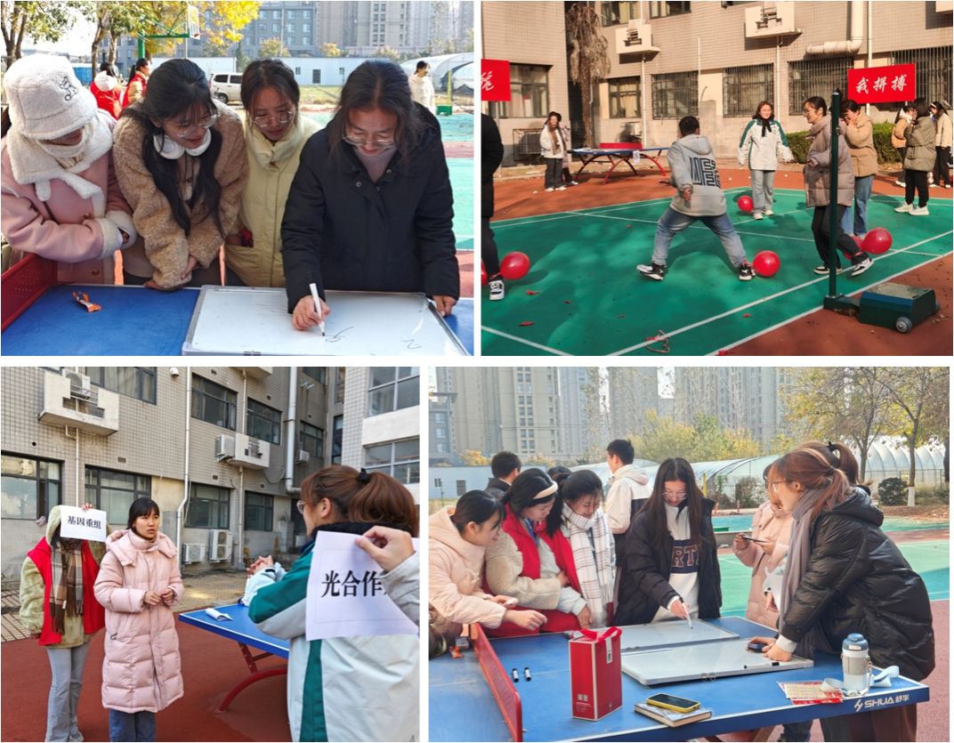 活力四射,趣味横生。举办“不忘来时路”趣味活动,包括“大国重器”你画我猜、趣味气球保卫战、“生物名词”互问互答等,围绕国家取得的先进科技成就以及生物学相关名词展开。同学们热情饱满、积极参与,活动现场一片欢声笑语,气氛热烈。