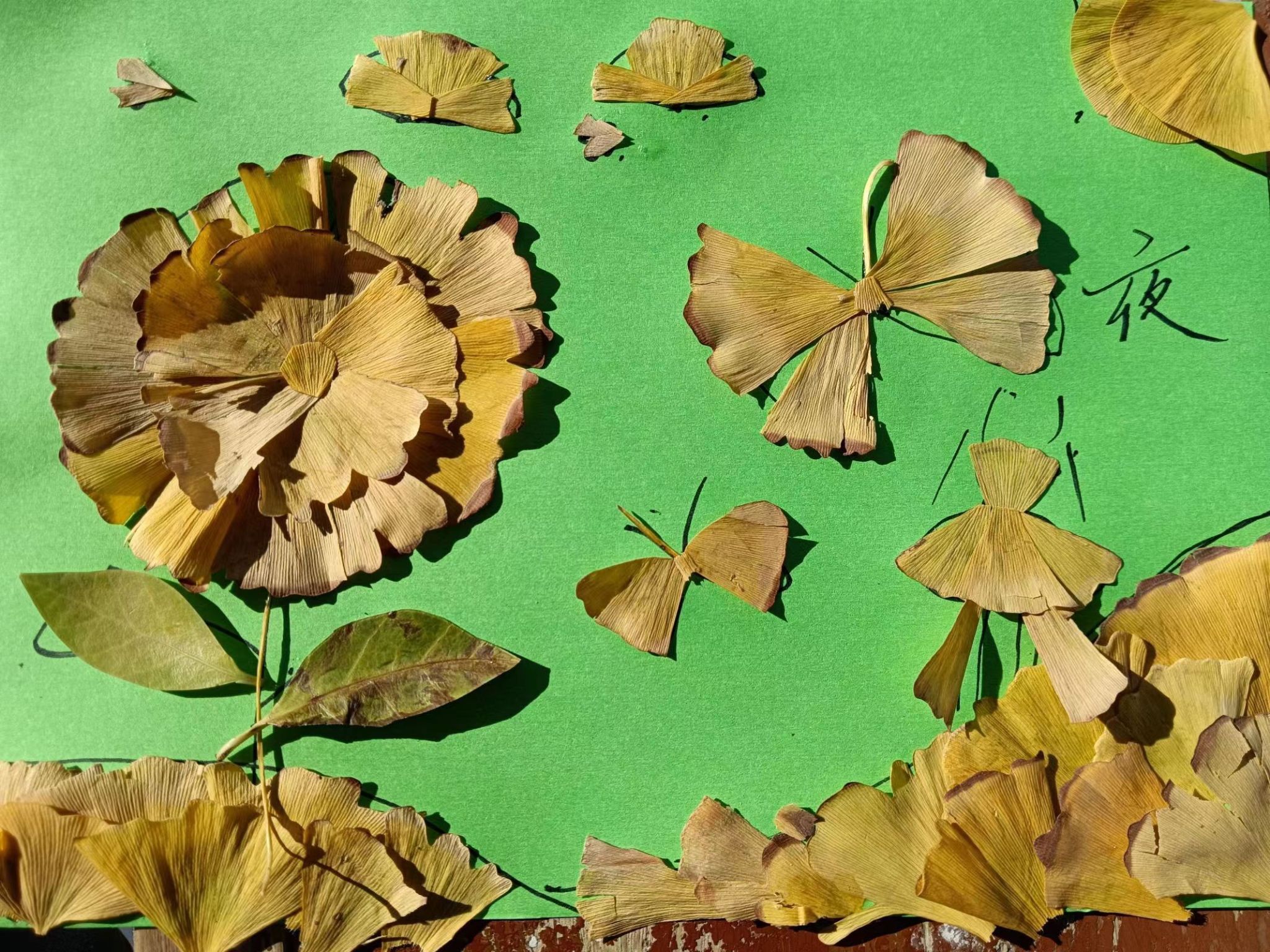 一叶知秋,落叶入冬,落叶是秋季的最后一份浪漫。秋末冬初,河大校园内的植物色彩缤纷,红衰翠减,别有一番美丽的韵味。志愿者提前收集了自然凋零的落叶枯枝,为参加活动的师生提供了创作需要的纸张、胶水,讲解了落叶所属植物的基本情况。“一千个人就有一千个哈姆雷特”,在同学们的手中,尖尖的落叶可以成为鸟儿身上的羽毛,也可以模拟金鱼飘逸的尾鳍;柔软的花瓣,可以是女孩飘逸的裙摆,也可以是脸蛋上泛起的红晕;玲珑的果实,可以是炯炯有神的眼睛,也可以是衣襟上小巧的纽扣……同学们在一贴一粘中感受生命流转,享受活动乐趣,为金黄的落叶重新赋予了新的灵魂。初冬的暖阳下,其乐融融的活动氛围为河大校园涂抹了一笔更加鲜活的色彩。