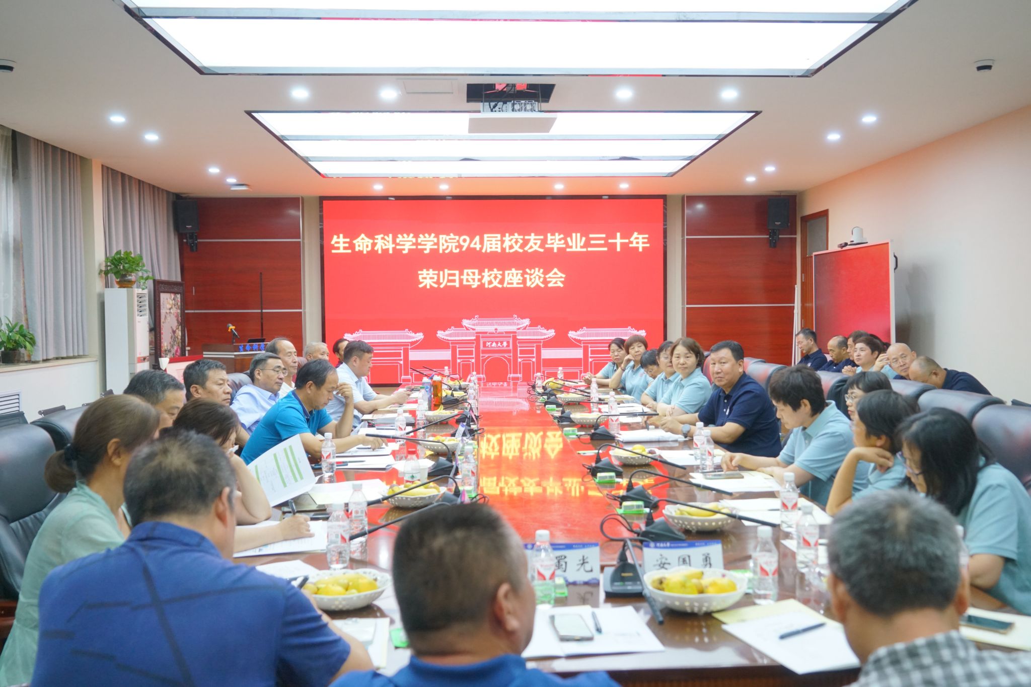 初秋时节,铁塔湖畔,悠扬的校歌承载着美好的记忆,师生共叙情谊,畅谈人生。8月17日上午,在永利集团304am登录B201会议室举行1994届校友毕业三十周年师生座谈会。永利集团304am登录原校长、国家重点实验室主任宋纯鹏,永利集团304am登录原副校长、生物系原党总支书记关学增,开封市政协副主席苗琛,永利集团304am登录学术副校长张立新,永利集团304am登录执行院长王刚,国家重点实验室常务副主任安国勇,教师代表董发才、李锁平、郑合勋、谷艳芳、王天仕、柳爱莲、郭蜀光、王洪涛以及学院班子成员、1994届校友代表等参加座谈会。会议由1994届毕业生、永利集团304am登录副校长苗雨晨主持。