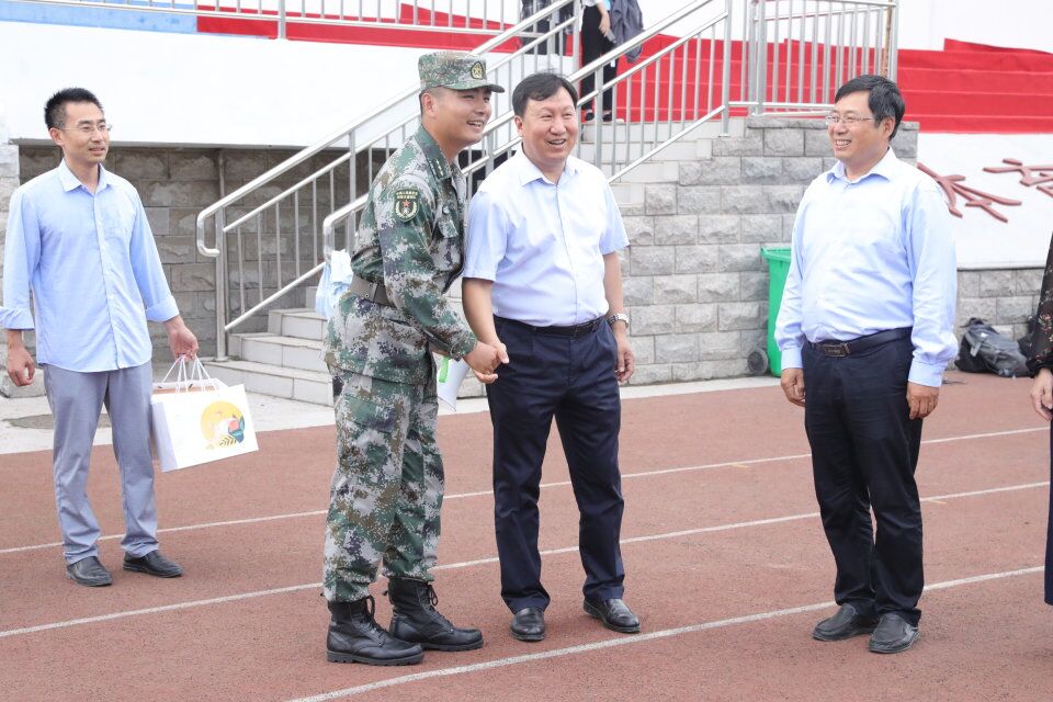 海上生明月,天涯共此时。中秋节是阖家团圆的日子,也是新生入学后在大学校园度过的第一个节日,为了让新生能够度过一个欢乐祥和的中秋佳节,9月13日下午,永利集团304am登录党委书记赵东保,常务副院长、党委副书记苗雨晨,党委副书记张亚歌,行政办公室主任张清德,团委负责人王松廷等前往新生军训场地,看望正在训练的教官、新生、辅导员。