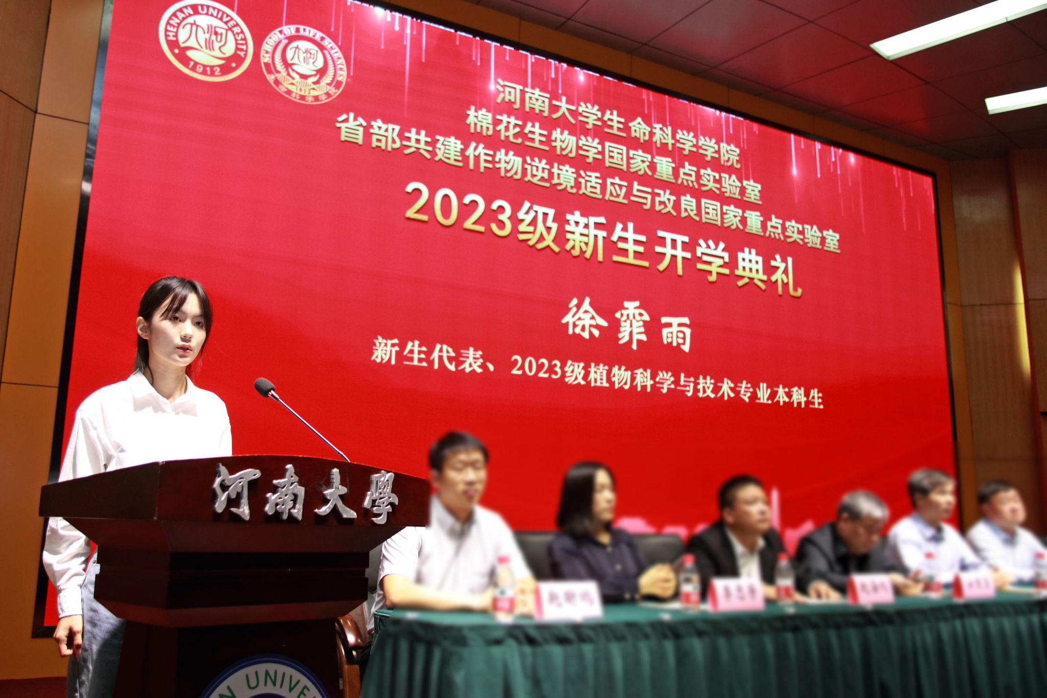 在校生代表2021级生物博士研究生韦准分享了在实验室学习的经验,激励同学们要知止而后有定、定而后能静,读书患不多、思义患不明,生而逢盛世、青年当有为。新生代表2023级植物科学与技术专业徐霏雨说身为河大学子,要熔铸“自信、拼搏、开放、创新”的新时代河大精神,努力成为祖国的栋梁之材,谱写人生华章。