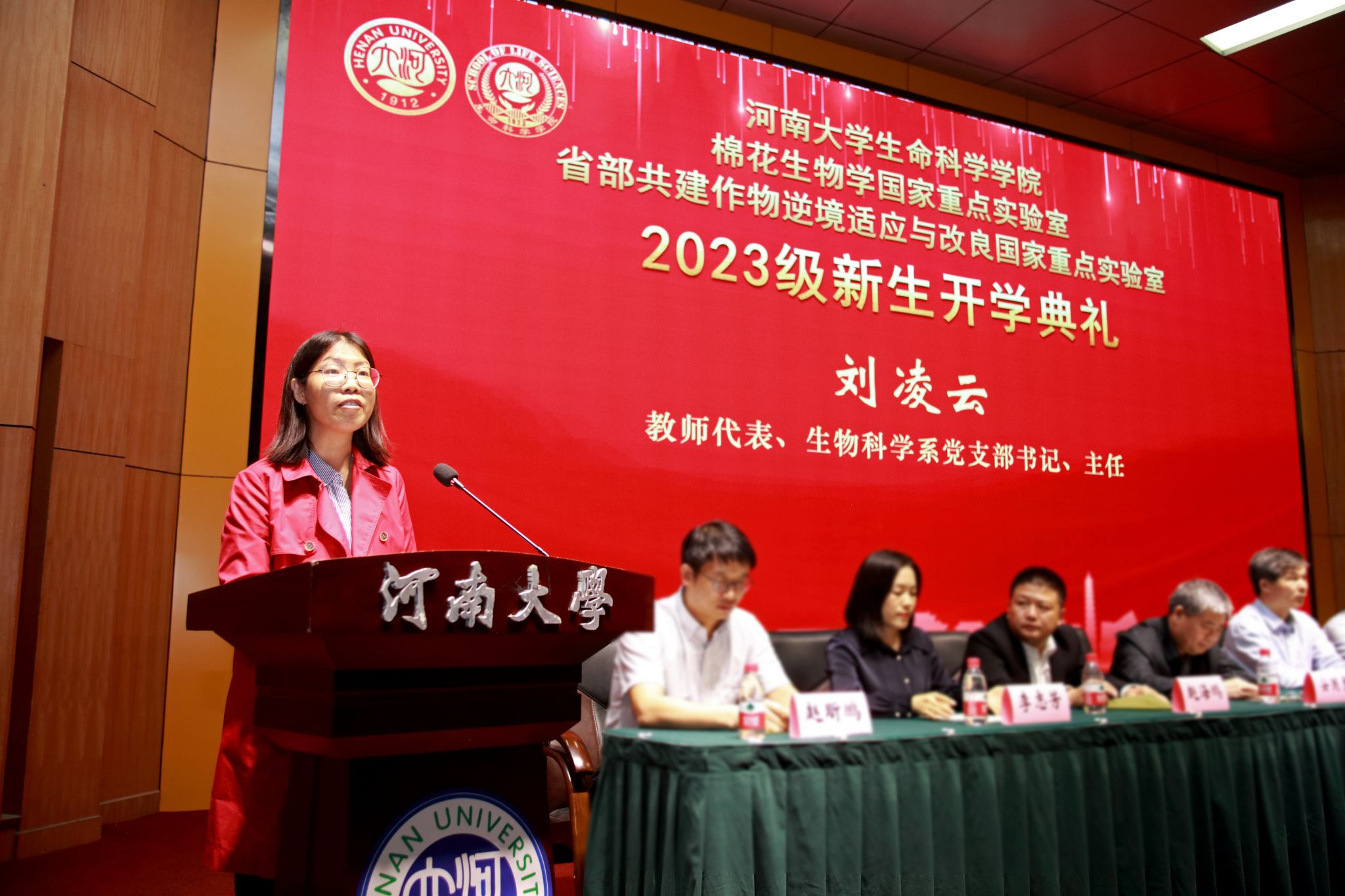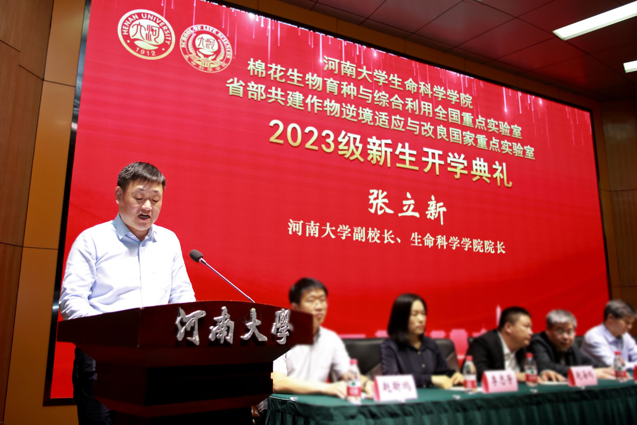 永利集团304am登录副校长、永利集团304am登录院长张立新教授致辞。他代表学院、重点实验室向来自五湖四海的2023级新同学表示热烈欢迎,详细介绍了河大生物学是世界一流、接续奋斗的学科,河大生科院是名师荟萃、成绩斐然的学院。他指出,河大生物系自1987年重建,一路高歌、硕果累累,经过一代代生科人的筚路蓝缕、团结奋斗,从“一个课题,两个老师,三间房子”,已然发展成百花齐放、实力雄厚的一流学科,成为全国领域内的后起之秀、一朵奇葩。他希望同学们传承和发扬“学无止境、境如生命”的生科文化,一是要胸怀“国之大者”,自觉肩负起为中华民族伟大复兴奋斗的青春使命,成为祖国栋梁;二是要自律自省,把握自己、珍惜当下,用奋斗的汗水迎接成功的喜悦;三是要学习创造,用具体回答焦虑,用笃定回答变化,用经历回答迷茫,用创造回答远方,立志成为一名优秀的生科人。