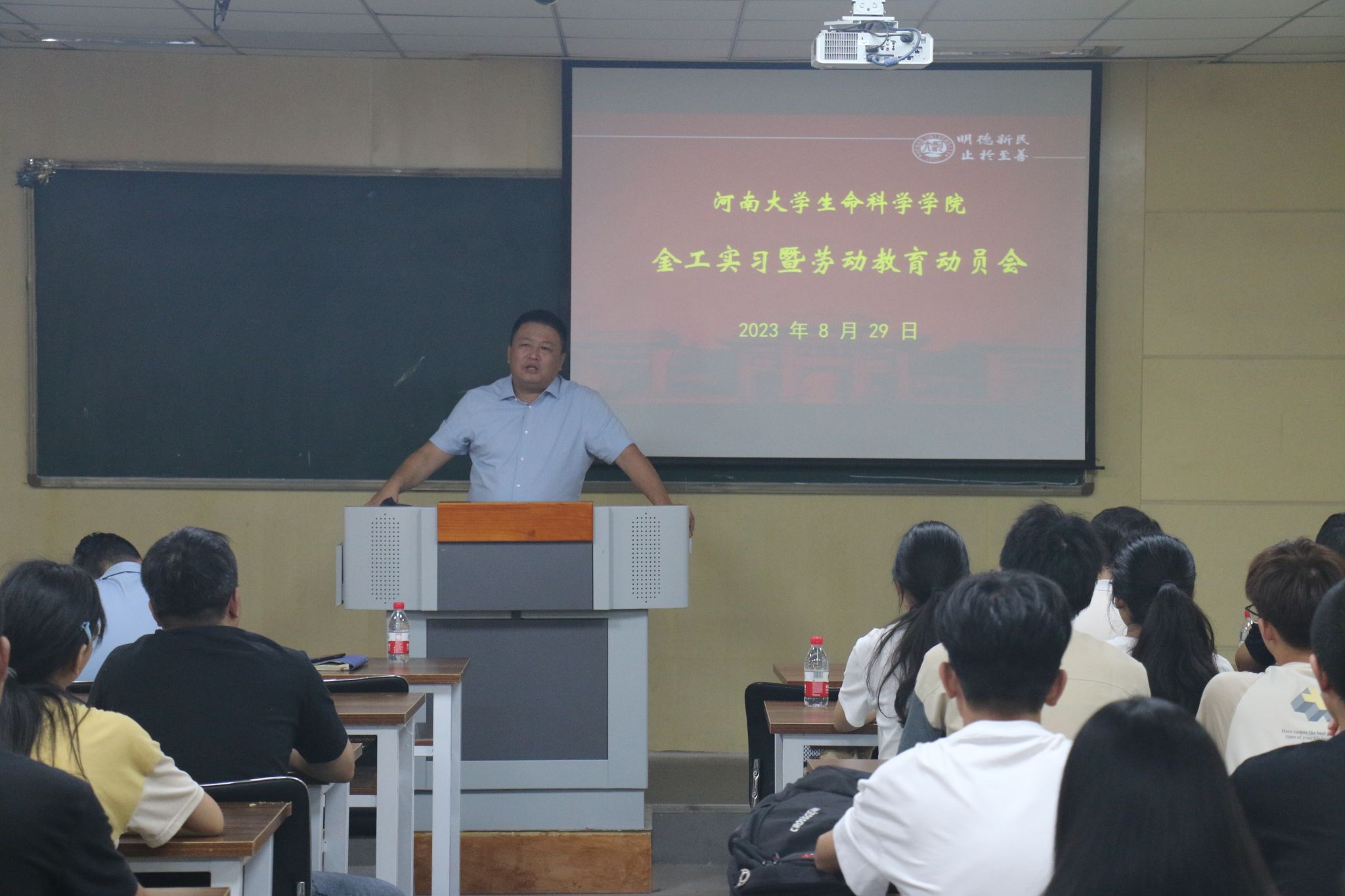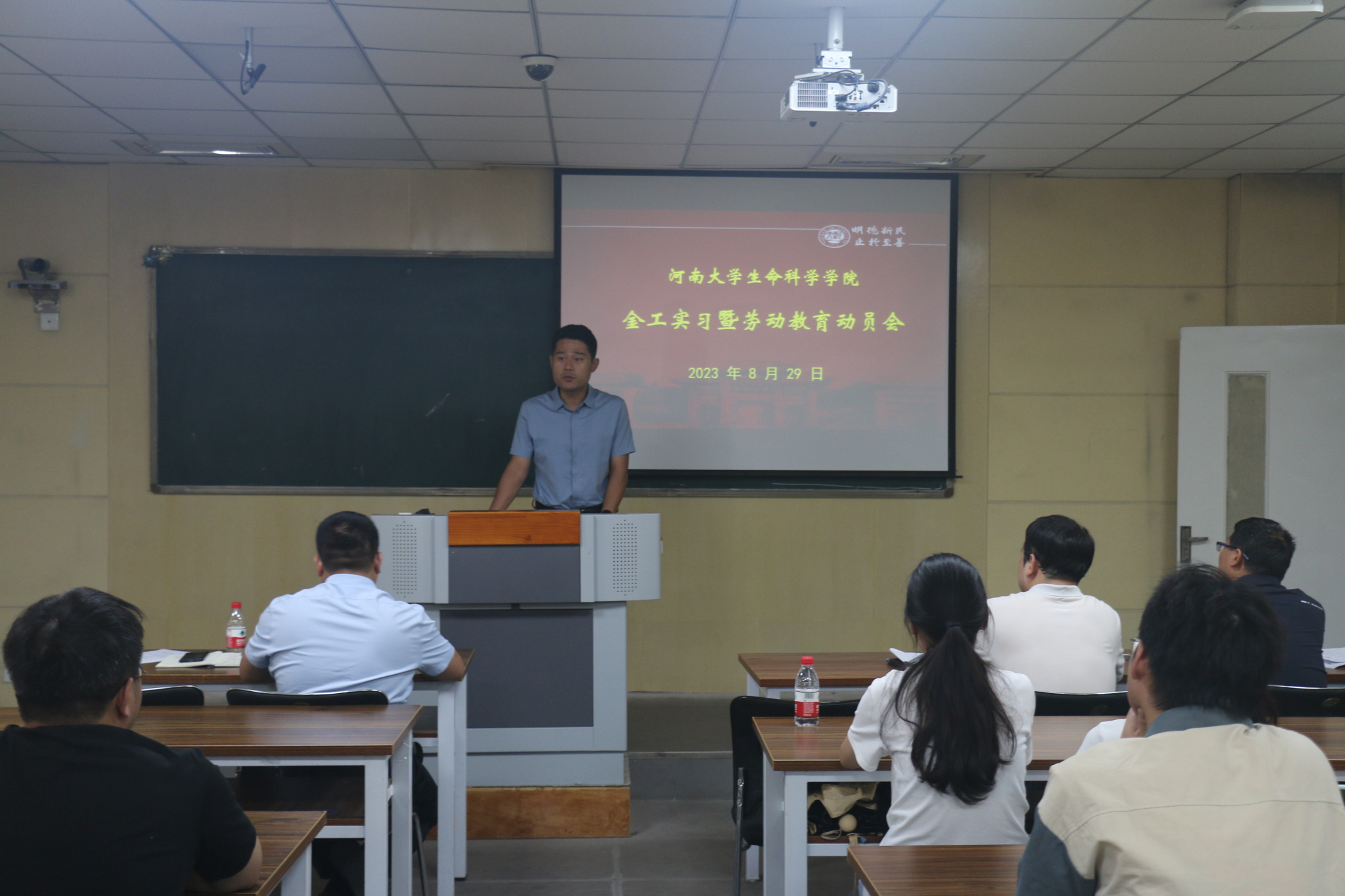 8月29日上午,经过精心筹备,2023年生物工程专业金工实习暨劳动教育工作启动。动员会在学院B101教室举行,副院长赵海鹏、党委副书记宋永鹏、生物工程系主任刘宇鹏、副主任李华、实习指导教师代表王少伟和2022级全体实习学生参加动员会,会议由刘宇鹏主持。