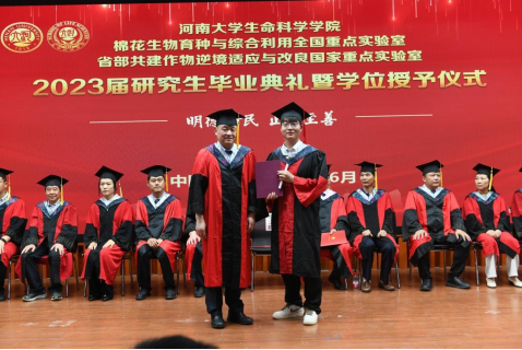 6月29日下午,永利集团304am登录2023届研究生毕业典礼暨学位授予仪式在学院圆形报告厅举行。永利集团304am登录副校长、永利集团304am登录院长张立新、学院党委书记吴建伟、执行院长王刚、棉花生物育种与综合利用全国重点实验室主任周树堂、省部共建作物逆境适应与改良国家重点实验室/棉花生物育种与综合利用全国重点实验室常务副主任安国勇以及学院全体领导班子、学位评定分委员会成员、家长代表、教师代表以及2023届全体研究生毕业生参加典礼。典礼由吴建伟主持。