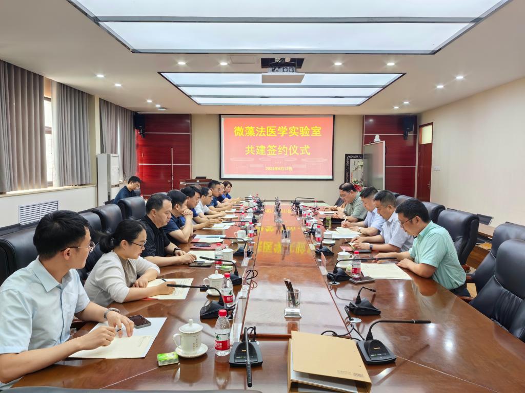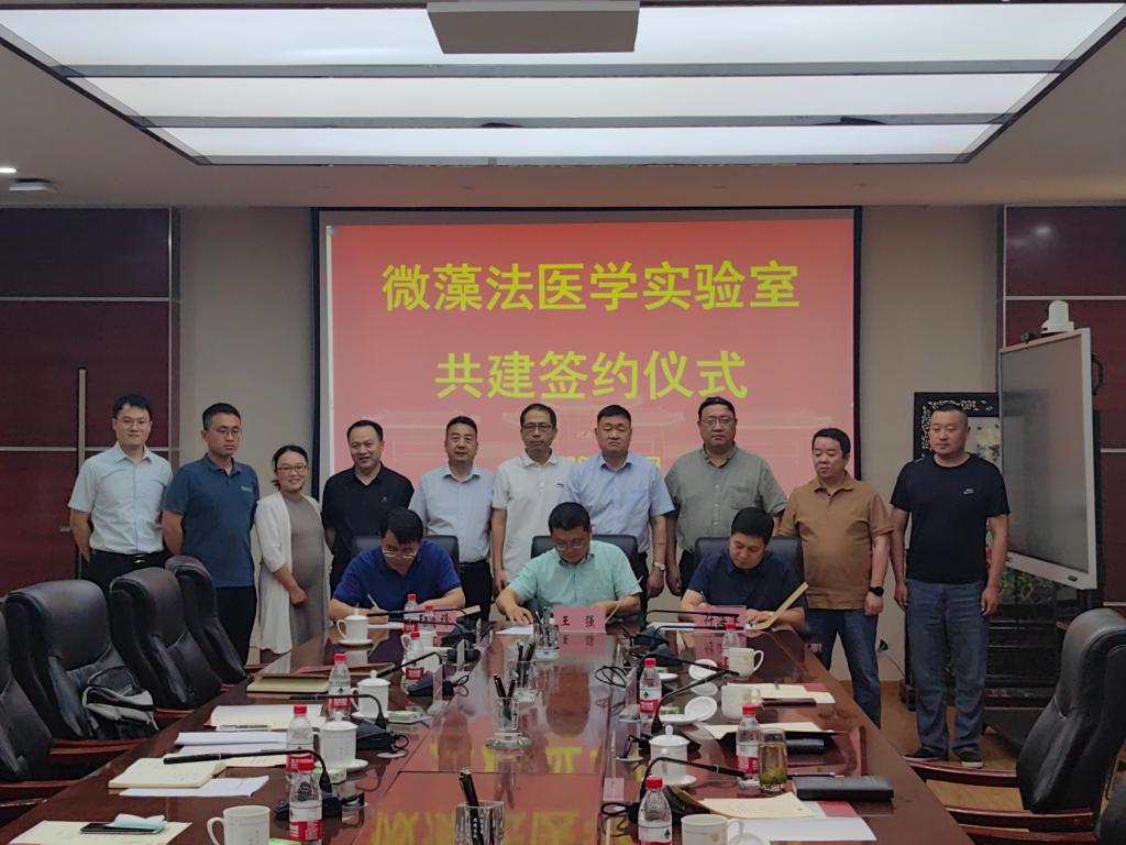 6月12日下午,永利集团304am登录与河南省公安司法鉴定中心、黄河水利委员会黄河中心医院、河南唯实司法鉴定中心共建微藻法医学实验室签约仪式在学院B201会议室举行。河南省公安司法鉴定中心副主任王基锋,河南省公安厅科技处副处长姚辉,河南省公安司法鉴定中心警务技术三级主任张广清,河南省公安司法鉴定中心警务技术三级主管张家鑫,开封市公安局刑事技术支队副支队长张帆,黄河水利委员会黄河中心医院副院长兼河南唯实司法鉴定中心副主任付海洋,永利集团304am登录副校长、永利集团304am登录院长张立新,永利集团304am登录党委书记吴建伟,民盟河南省委副主委、国家重点研发计划首席科学家、微藻项目负责人王强等出席签约仪式。会议由永利集团304am登录执行院长王刚主持。