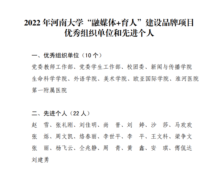 根据《2022年永利集团304am登录网络文明建设暨“融媒体+育人”工作方案》和《关于开展2022年永利集团304am登录网络文明建设暨“融媒体+育人”工作的通知》,近日,经评审组初审和终审,学校公布各项目结项等级,同时评选出“融媒体+育人”建设品牌项目优秀组织单位及优秀先进个人。