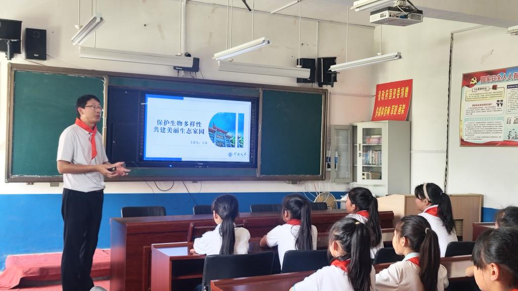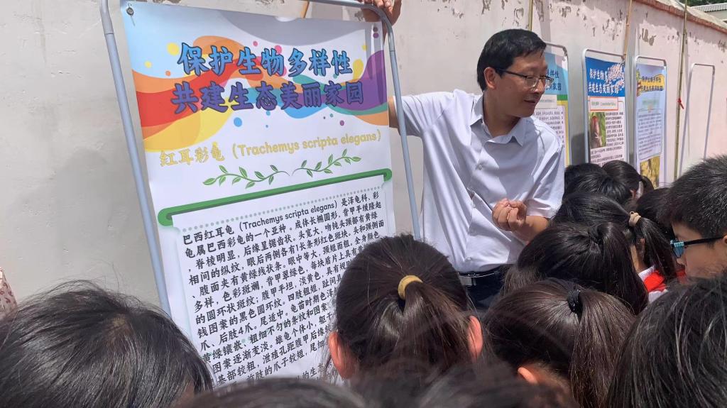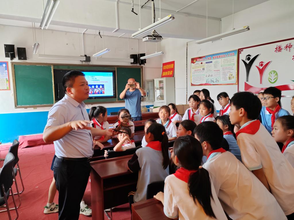 “全国科技活动周”和“全国科技工作者日”之际,为增强青少年对生物多样性的认识和保护意识,6月2日,受河南省政府国资委邀请,永利集团304am登录赴上蔡县五龙镇孟楼小学开展“走进多样的生命,体验多彩的世界”主题科普活动。学院副院长赵海鹏,教师张海燕教授,王来博士,王少伟博士以及春桐学社成员;上蔡县县委常委、五龙镇党委书记乔鹏,省政府国资委驻孟楼村第一书记边涛,上蔡县五龙镇孟楼村支部书记刘涛和上蔡县五龙镇孟楼村小学校长徐宝庆等同志出席。