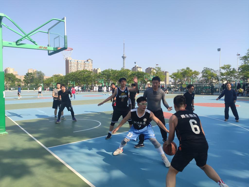 随着一声哨响,比赛拉开帷幕。研究生率先拿到球权,教职工尽力做好防守,双方你来我往各有得分进账。随着体能的下降,教职工改变打法,相比之下,研究生则依旧保持快攻为主的打法,虽然在年龄和体能有一定差距,但教职工凭借默契的配合和老道的经验保持着进攻效率,比分交替领先,场边观众不时发出欢呼和掌声。最后比分定格在76:75,研究生凭借读秒阶段的进球反超比分,教职工篮球队以一分惜败。
