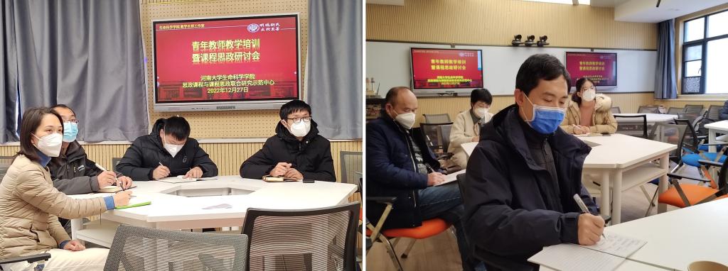 为做好教学名师对青年教师的传帮带工作,帮助青年教师站稳讲台打牢职业基础,永利集团304am登录于12月27日上午在学院智慧教室以线上线下相结合的方式召开青年教师教学培训暨课程思政研讨会。特邀学院执行院长、河南省教学名师王刚教授,河南省教学名师谷艳芳教授,副院长、永利集团304am登录教学名师赵海鹏教授为本次主讲嘉宾,学院青年教师以线上和线下的方式参加了研讨会,会议由教务办公室主任张要军主持。