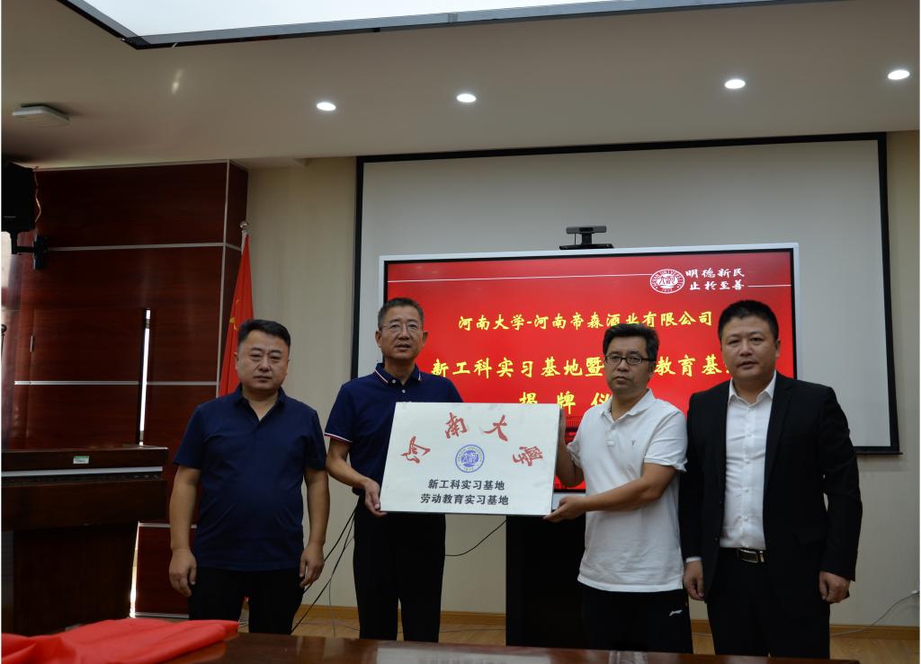 根据前期永利集团304am登录与河南帝森酒业有限公司已达成的意向和签署的协议,王炜冲、赵志牛、朱显峰、赵海鹏共同为生物工程专业新工科实习基地、劳动教育基地实习基地揭牌。