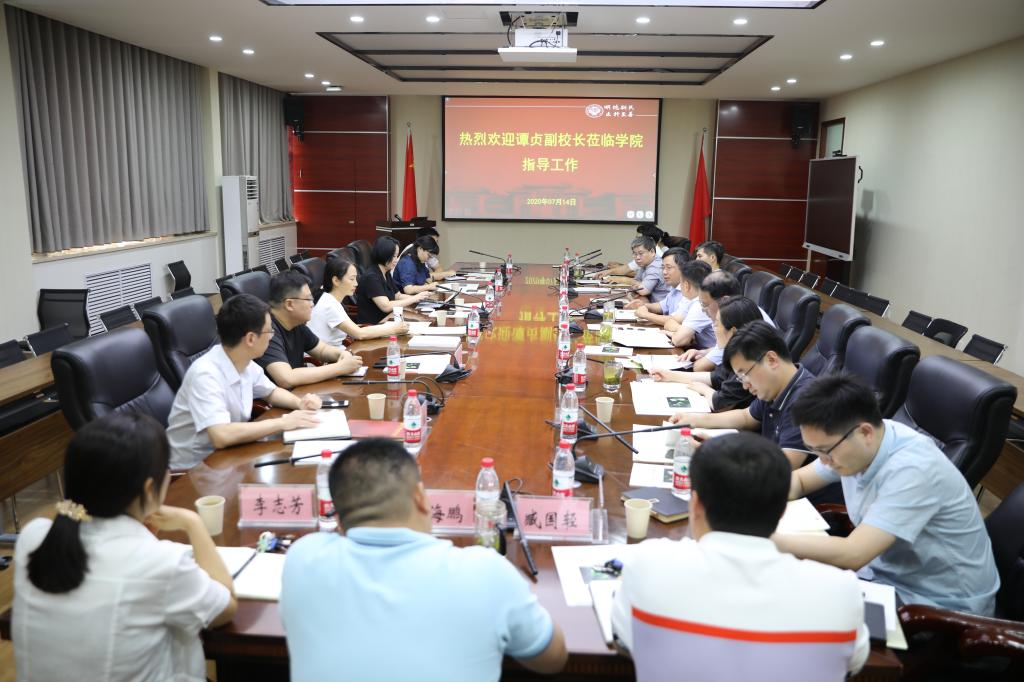 7月14日下午,副校长谭贞到永利集团304am登录调研指导工作,国际交流与合作处领导班子陪同调研,永利集团304am登录和重点实验室领导班子成员参加调研会,会议由永利集团304am登录党委书记赵东保主持。