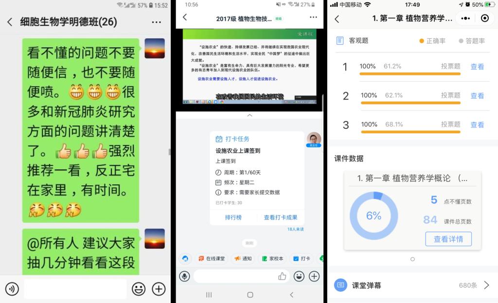 2月18日上午,董薇老师通过“钉钉”为2017级植物科学与技术专业开展网络授课。第一讲内容为《设施农业》课程的绪论部分,通过2020年中央一号文件(简称“一号文件”)“一号文件”中关于设施农业的要求和相关内容,结合当前“新型冠状病毒肺炎”疫情背景,分析了疫情导致的设施农业生产环节动力不足、产品流通、销售受阻等影响;通过介绍2003年非典疫情的亲身经历和感悟,鼓励学生以积极的心态对抗疫情,合理安排学习和生活。