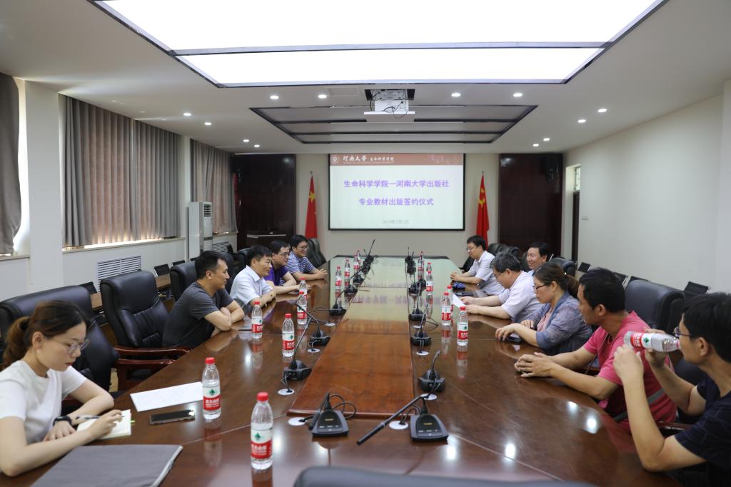 苗雨晨指出,教材建设是我校“双一流”建设的重要构建部分,教材的质量直接体现着高等教育和科学研究的发展水平,也直接影响本科教学的质量。专业教师对于如何将自己丰富的素材形成教材还需要多向出版社学习,希望河大出版社能够在我院未来的文化传播和文化传承方面多做指导。袁凯强表示,教材是教师和学生之间沟通的桥梁,希望河大出版社能够为学院教材建设贡献力量,做好服务。同时对如何做好系列教材建设、构建生科院一流教材品牌建设提出了自己的构思和想法。最后表示,希望生科院和河大出版社共同携起手来,为学院专业教材建设和学校“双一流”学科建设做好做强保驾护航。