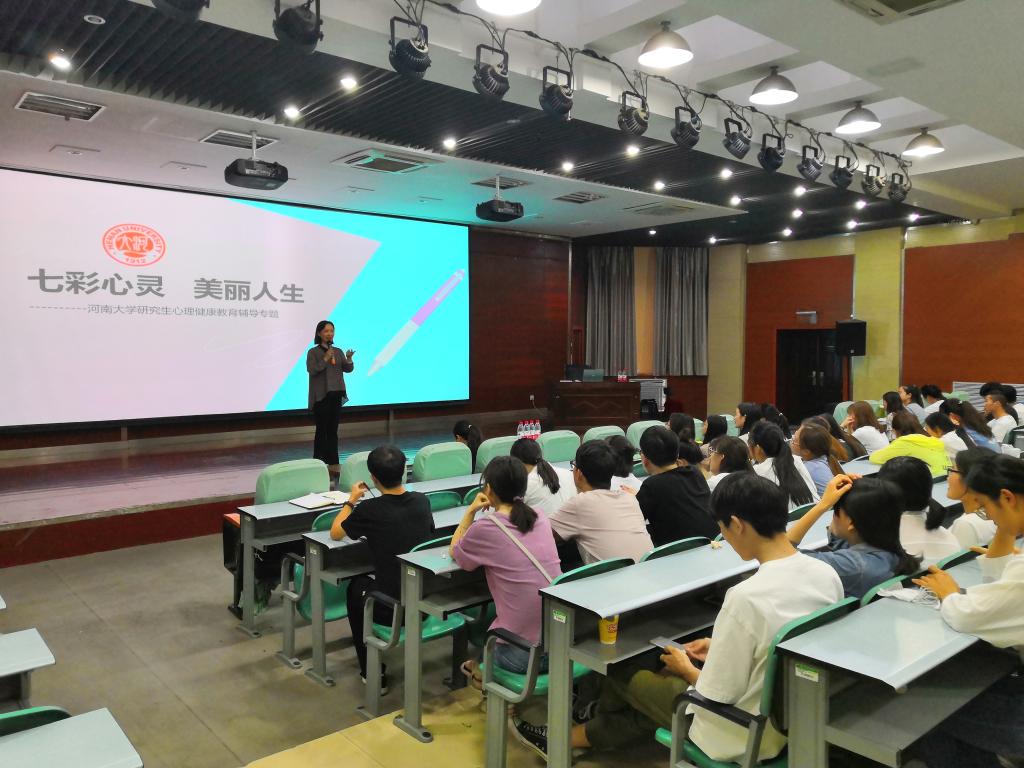 为进一步加强研究生心理健康教育,切实提高广大研究生的健康发展意识和心理健康水平, 5月29日晚,永利集团304am登录举办研究生健康教育讲座,研究生工作部副部长、教育管理办公室主任刘婷应邀作《七彩心灵 美丽人生》专题讲座。讲座由学院党委副书记张亚歌主持,研究生辅导员杨翠玲、王丰老师带领永利集团304am登录、植物逆境生物学重点实验室200余名博硕士研究生聆听了专题讲座。