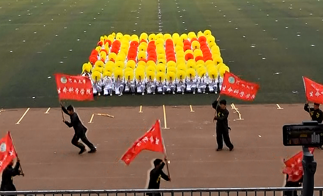 台上一分钟,台下十年功。经过近两个月的训练,同学们动作熟练,配合默契。比赛时,在激昂的配乐中,同学们迅速而又整齐地在学院领旗的带领下集合到场地中央。开场表演中,同学们别出心裁,将舞旗、手翻花和诗朗诵相结合,向大家展示生科学子昂扬的精神面貌。大家齐心协力跑出“No.1”的图案,象征着卓越生科学子,赢得在场观摩师生的热烈掌声,为观众带来一场视觉盛宴。