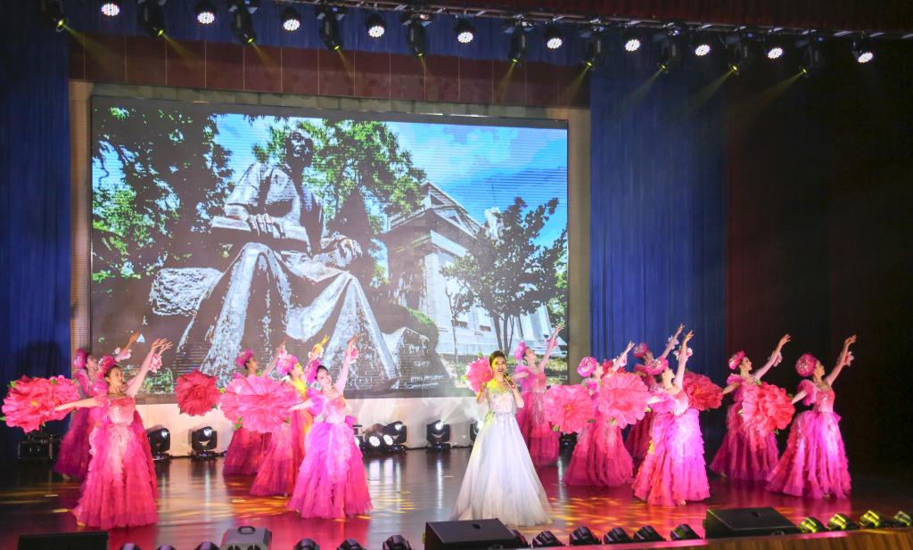 永利集团304am登录校长宋纯鹏、校党委副书记雷霆、校党委常委、副校长刘先省、原副校长关学增、总会计师韩守富、信阳学院院长施昌海及学校部分职能部门、相关学院的领导老师出席本次晚会。全院师生欢聚一堂,共同庆祝永利集团304am登录恢复建院三十周年。
