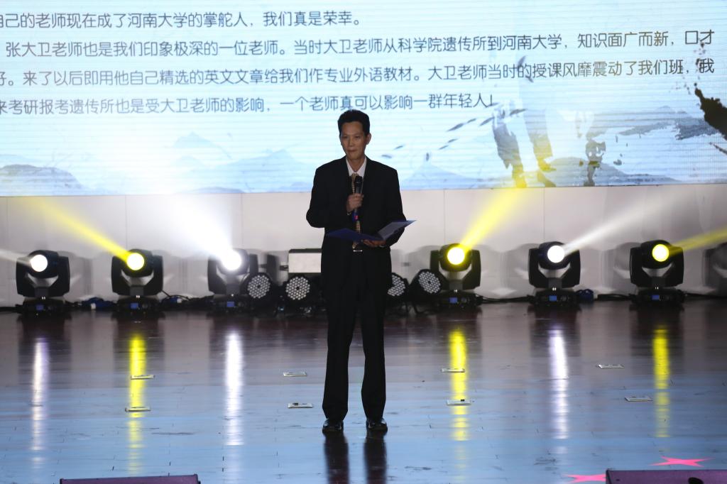 在难忘师恩篇章,选取了白玲教授朗诵的宋纯鹏教授所作的《学者本色,理念至上—怀念蔡兴元先生》,张彤教授的《山仑院士在生科院》,1988级校友、国家杰青、现任中国农业大学特聘教授赵要风的《河大四忆——师》,无一不表达了对恩师的深切怀念和无限景仰!在校园拾忆篇章,选取了关学增教授的《生物系,一片创造的沃土》,1991级校友,河南省优秀教师、现任开封市基础教育科学区管理中心主任姜峰基老师的《光荣属于河大生物系》,宋敏副教授的《最美时光》,2016级本科生刘梦的《总有星星在身旁》,苗琛教授的《艰苦创业,砥砺前行,让生命更出彩》,生科人的校园情怀瞬间勾勒出一幅幅永恒的动人画卷,飘荡在晚会的各个角落,流淌在每一位观众的心头。