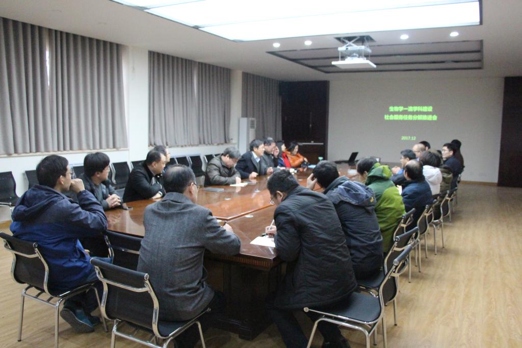12月12日下午,永利集团304am登录在B201会议室召开“生物学一流学科建设——社会服务任务分解推进会”。学院党政班子成员、各系室负责人、特聘教授代表及各课题组相关教师代表参加会议。会议由学院党委书记赵东保主持。