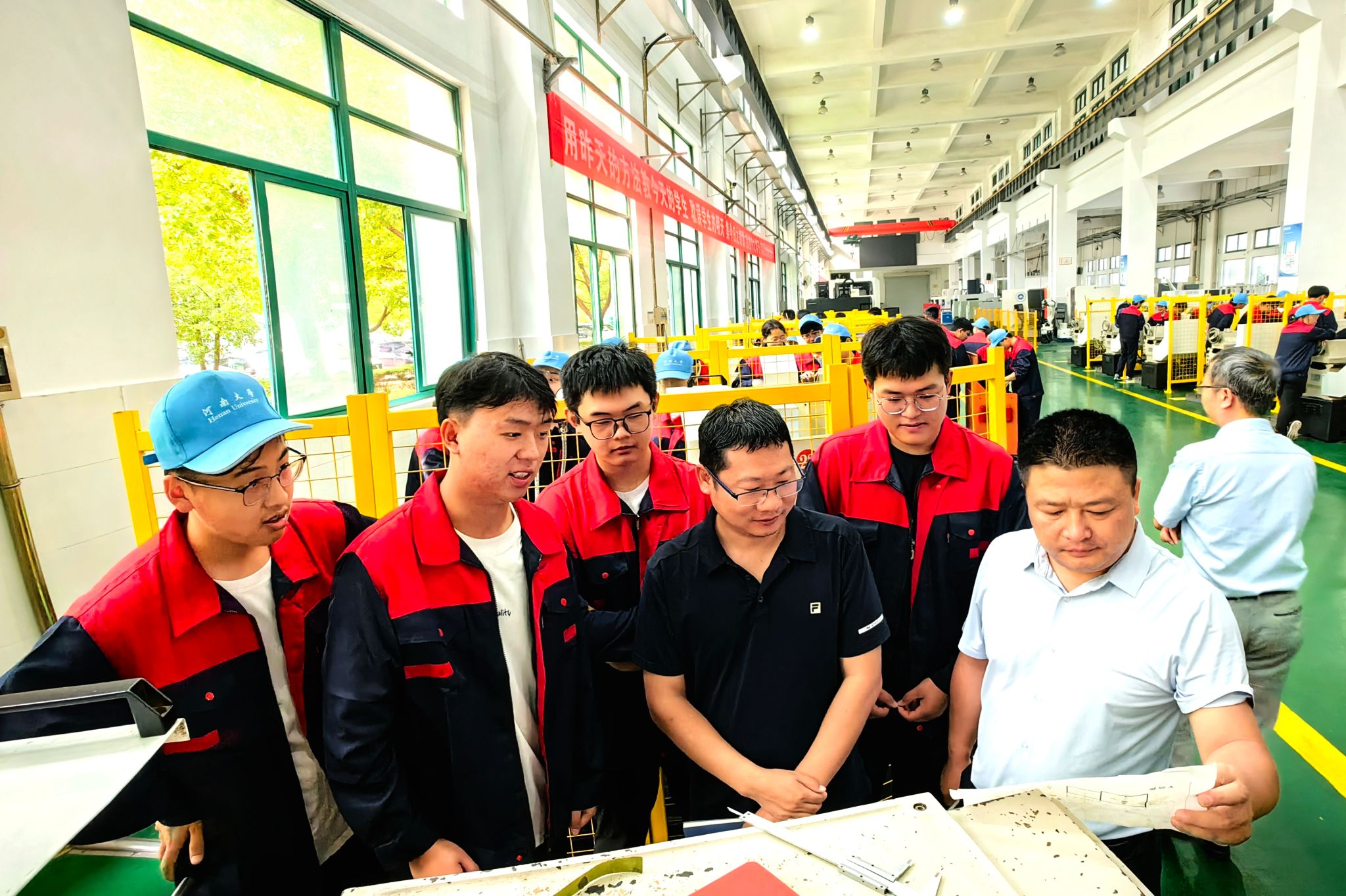9月5日上午,永利集团304am登录党委副书记宋永鹏、副院长赵海鹏及生物工程系主任刘宇鹏、系副主任李华到黄河水利职业技术学院,看望正在进行金工实习的2022级生物工程专业学生。此次金工实习是生物工程专业的实践基础课,共持续10天,旨在培养学生工程意识、动手能力和创新精神。