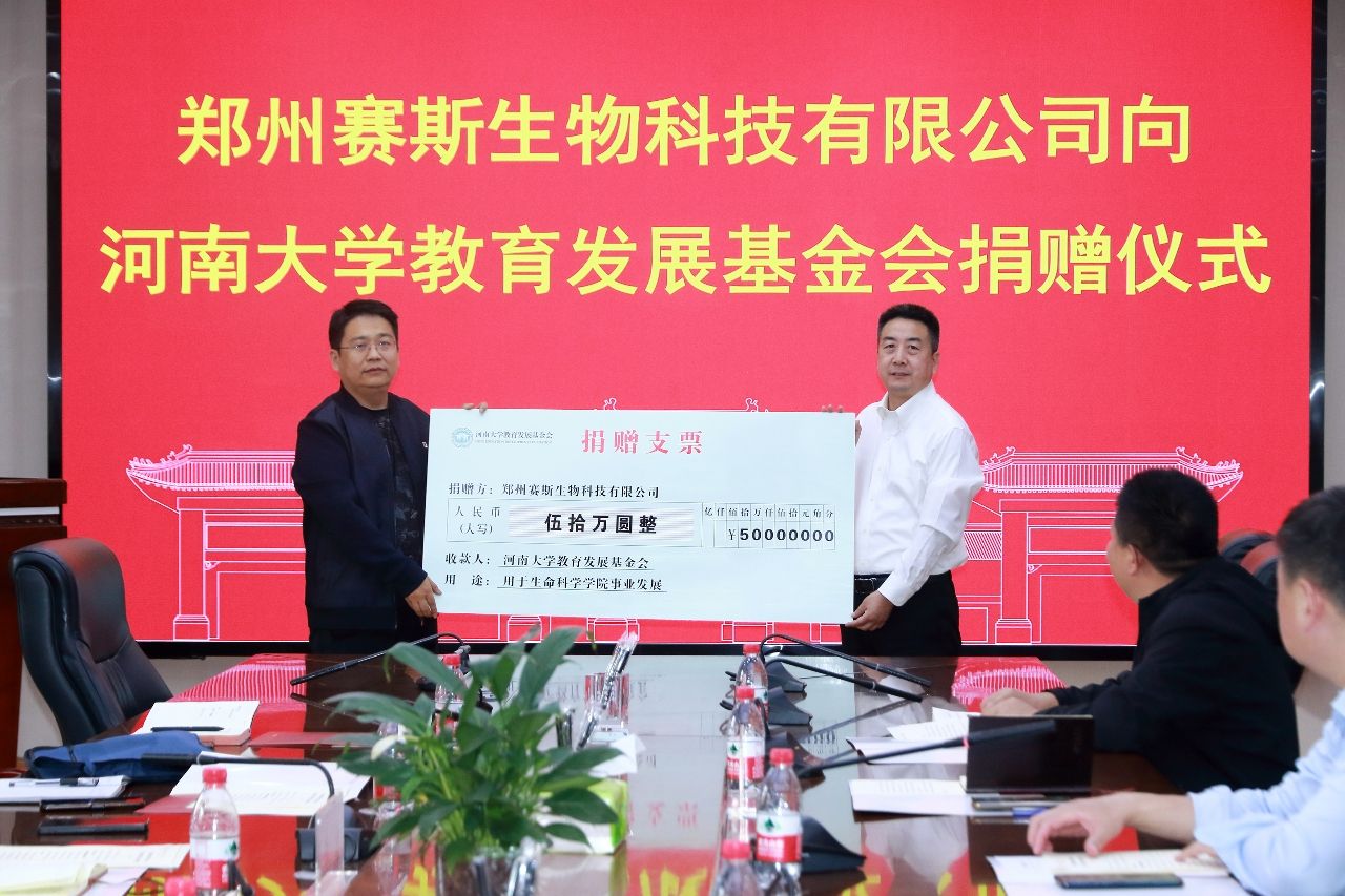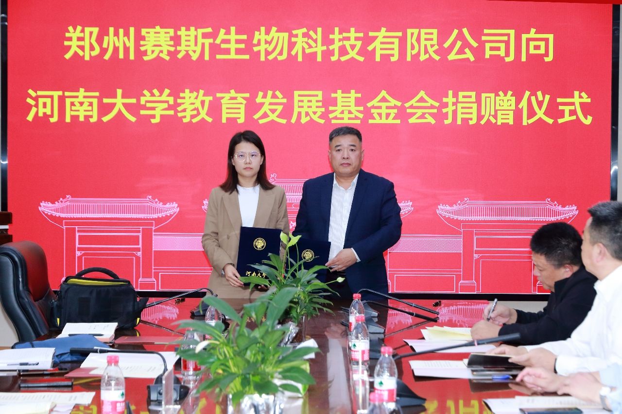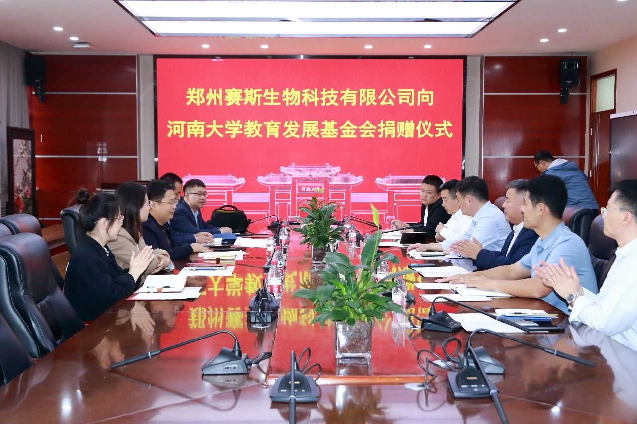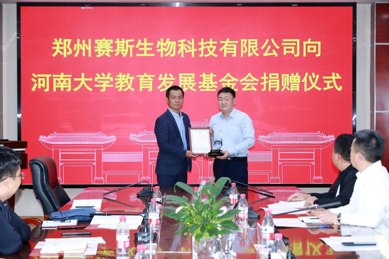 金秋送爽、丹桂飘香。10月13号下午,郑州赛斯生物科技有限公司向永利集团304am登录教育发展基金会捐赠仪式在永利集团304am登录B201会议室举行。郑州赛斯生物科技有限公司总经理李坤、销售总监孙福磊、财务总监张艳敏、技术总监陈金虎、总经理助理贾书慧,永利集团304am登录副校长、永利集团304am登录院长张立新,永利集团304am登录教育发展基金会秘书长刘会军,永利集团304am登录党委书记吴建伟、副院长赵海鹏和李国勇等参加了仪式。仪式由永利集团304am登录党委副书记宋永鹏主持。