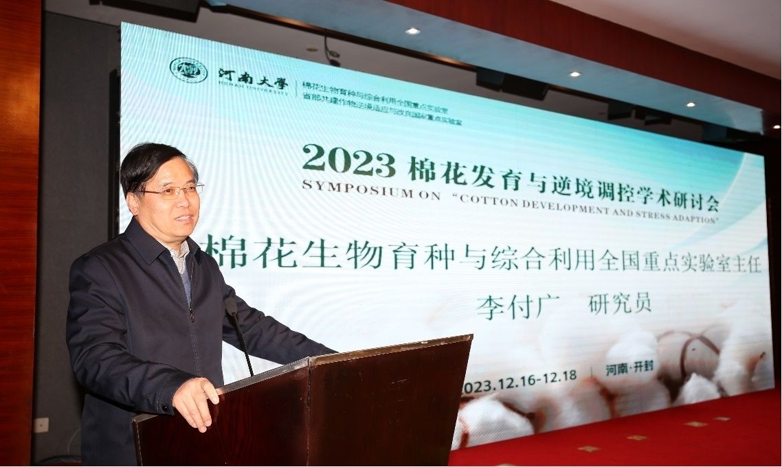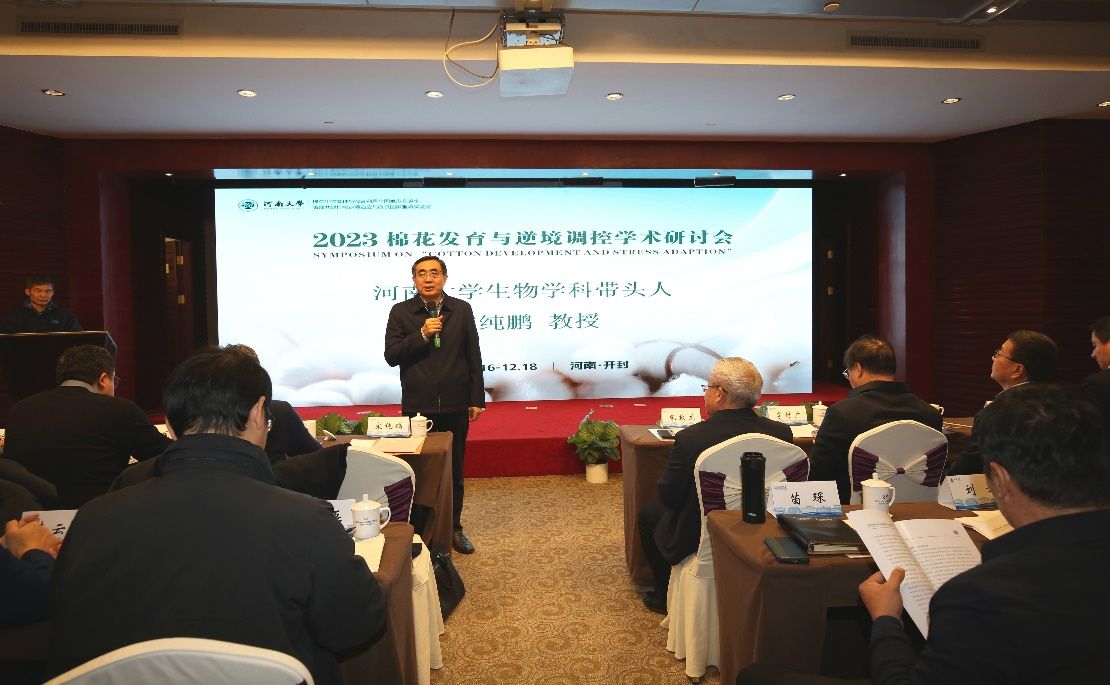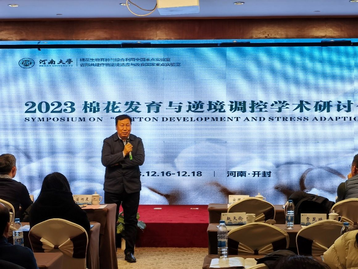 2023年12月17-18日,由棉花生物育种与综合利用全国重点实验室和省部共建作物逆境适应与改良国家重点实验室联合举办的2023年度“棉花发育与逆境调控”学术研讨会在我校顺利召开。会议邀请了中国工程院院士张献龙,国际欧亚科学院院士李付广和来自中国农科院棉花研究所、中国科学院分子植物科学卓越创新中心、浙江大学、中国农业大学、华中农业大学、华中师范大学、南京农业大学、河北农业大学、西南大学以及永利集团304am登录从事棉花生物学研究的资深专家和青年学者30余名做会议报告。永利集团304am登录、农学院、棉花生物育种与综合利用全国重点实验室和省部共建作物逆境适应与改良国家重点实验室的教师及研究生200多人参加学术研讨。我校棉花生物育种与综合利用全国重点实验室主任周树堂教授主持研讨会开幕式。