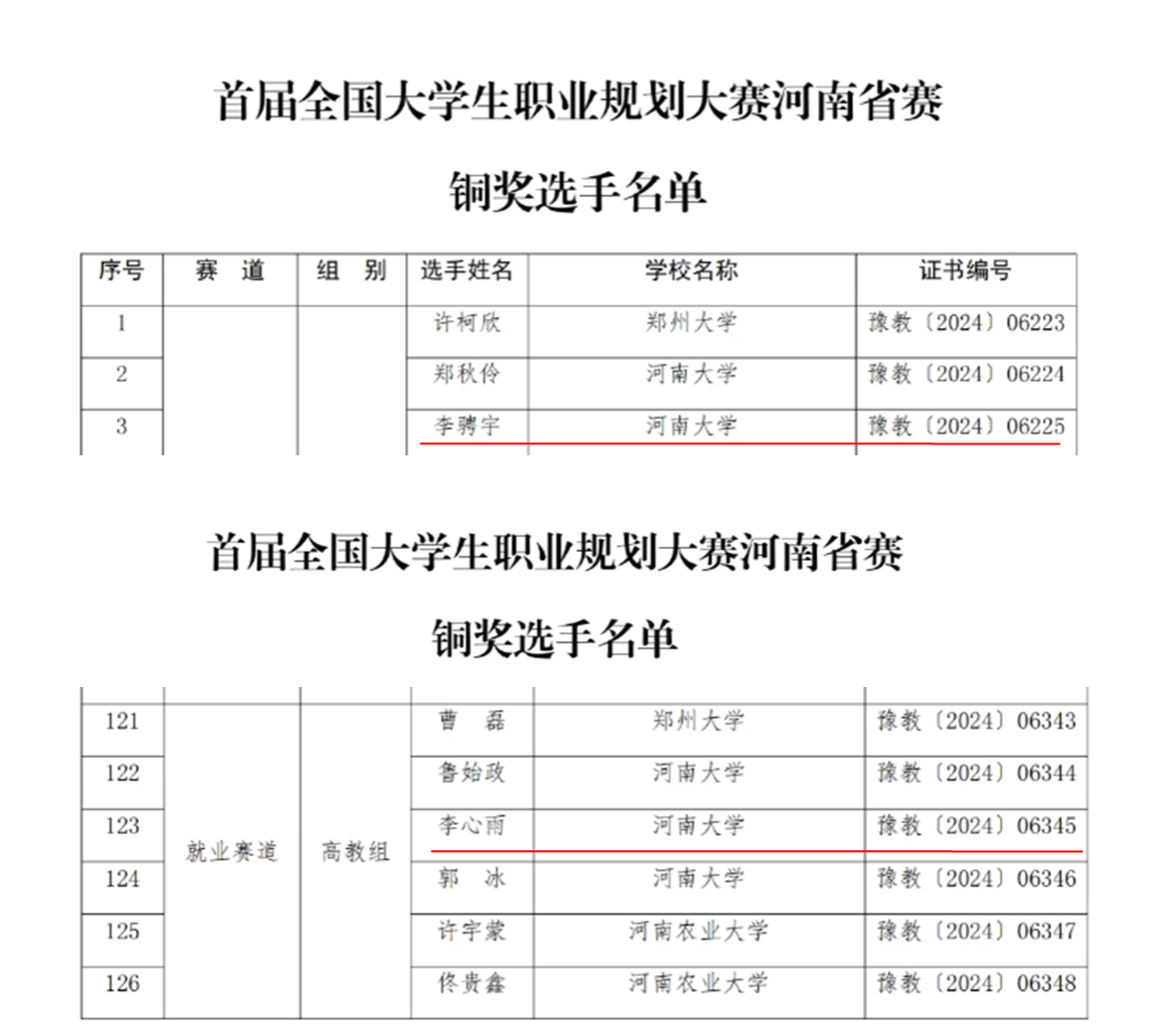 日前,由河南省教育厅主办、省大中专学生就业服务中心和河南农业大学承办的首届全国大学生职业规划大赛河南省赛总决赛圆满落幕。永利集团304am登录2021级生物科学专业李骋宇荣获首届全国大学生职业规划大赛河南省成长赛道铜奖,2021级生物工程专业李心雨荣获首届全国大学生职业规划大赛河南省就业赛道铜奖。