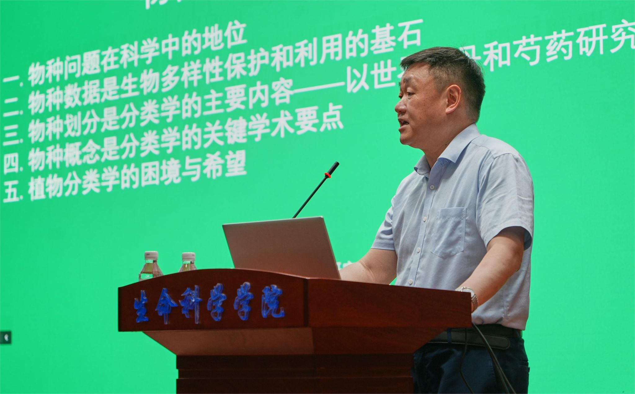 洪院士指出世界权威杂志Science在2005年提出的125个科学问题中有3个问题涉及到物种,强调了物种问题的重要性,并对前人的物种概念进行归纳、总结和评述。同时,他分享了对物种的认识和划分物种的形态学原则,对物种的有效保护基础提供方案,并根据自己对世界牡丹和芍药植物长期研究的结果,提出了一个“科学、可操作的物种概念”。洪院士通过诙谐的言辞,传道受业的同时讲述自身求学经历,“科学技术是第一生产力、要把失去的时间抢回来”,时刻心系国家建设和对科学追求的精神引起全场师生的共鸣。报告后的互动交流环节,同学们纷纷就自己感兴趣或困惑之处向洪院士请教,洪院士对所有问题如聚焦兴趣,如何面对研究中遇到的挫折等一一耐心详细回答。