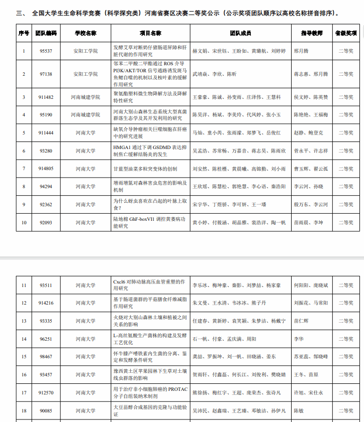 近日,全国大学生生命科学竞赛(2024,科学探究类)河南省赛区决赛在周口师范学院成功闭幕,比赛首次采取省赛、国赛二合一的方式进行。经过网络评审、参赛项目PPT展示、选手答辩、专家评审等环节,永利集团304am登录共荣获国家一等奖(省级特等奖)2项、国家二等奖(省级一等奖)4项、国家三等奖(省级二等奖)14项和省级三等奖17项,同时获优秀组织奖;上述奖项中,包含永利集团304am登录国家一等奖(省级特等奖)2项、国家二等奖(省级一等奖)2项、国家三等奖(省级二等奖)9项和省级三等奖11项。
